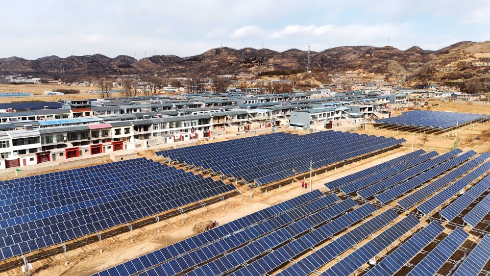 这是位于陕西省米脂县井家畔村的光伏电站(无人机照片,2024年3月1日摄)。新华社记者 邹竞一 摄