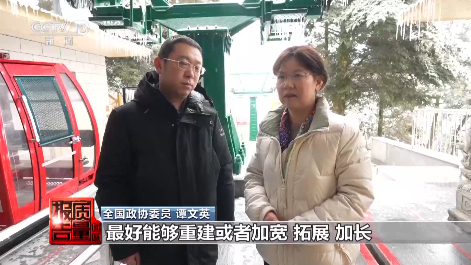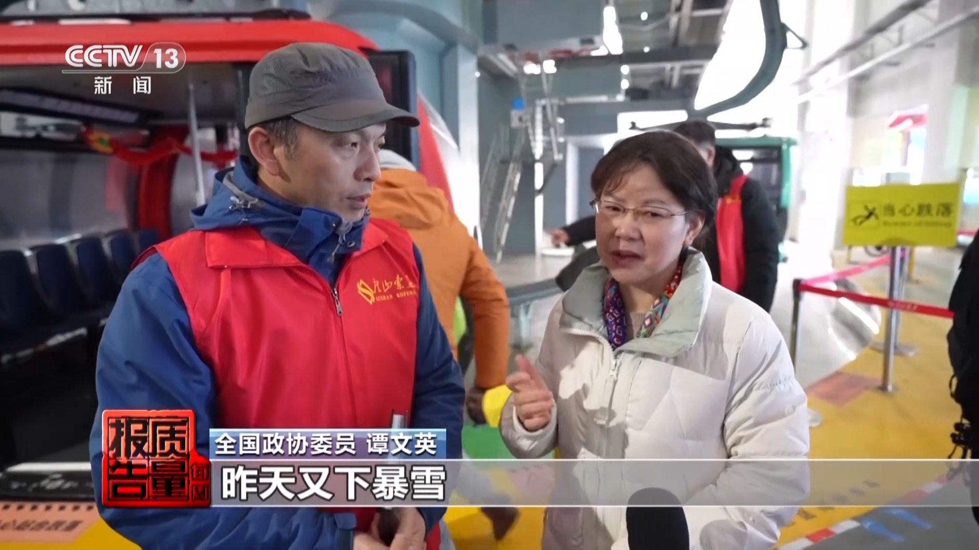 全国政协委员 谭文英:现在是极端天气,昨天又下暴雪,同时温度又低又下了雨,在这种天气下我们对索道的安全尤其要加强管理。