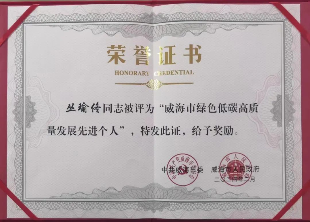 2月18日,在威海市召开的2024年工作动员大会上,威海瑞云祥养老服务股份有限公司董事长丛瑜佟被表彰为“威海市绿色低碳高质量发展先进个人”,这是丛瑜佟近年来继先后被评为全国敬老爱老助老模范人物、山东省三八红旗手、山东省新时代岗位建功劳动竞赛标兵、齐鲁和谐使者、省级最美院长以及被授予山东省五一劳动奖章之后,获得的又一殊荣。