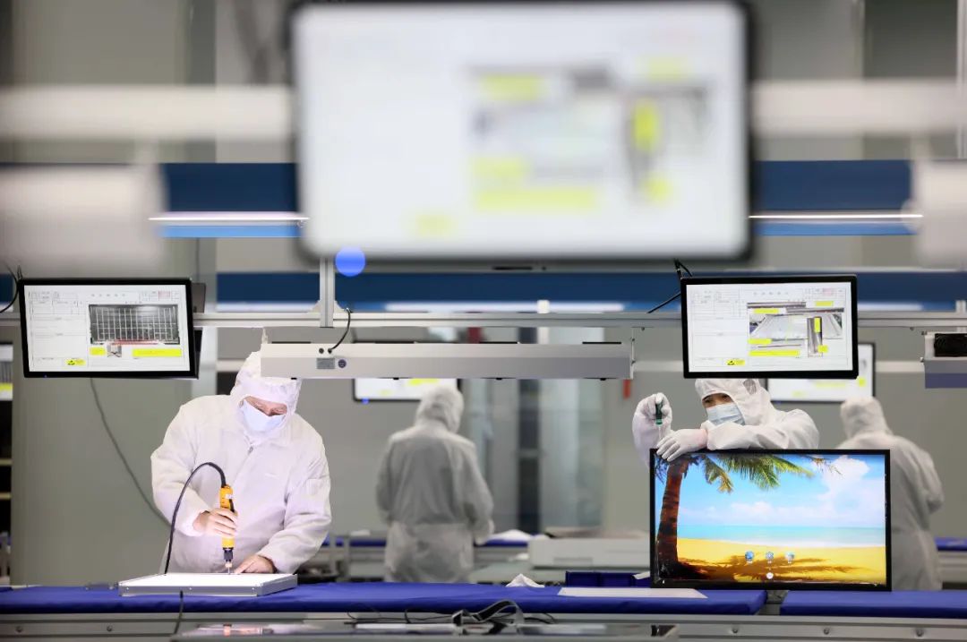 合肥一家电子科技公司员工在智慧显示屏生产线上作业 解琛 摄