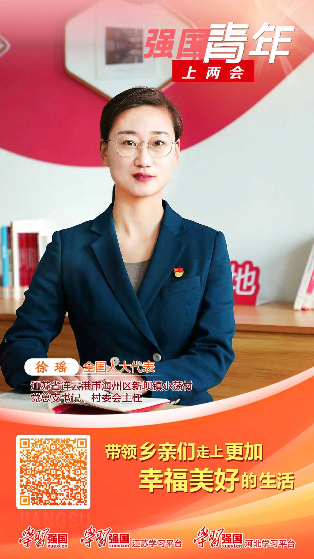 本期邀请全国人大代表,江苏省连云港市海州区新坝镇小荡村党总支书记、村委会主任徐瑶,讲述自己的履职故事。