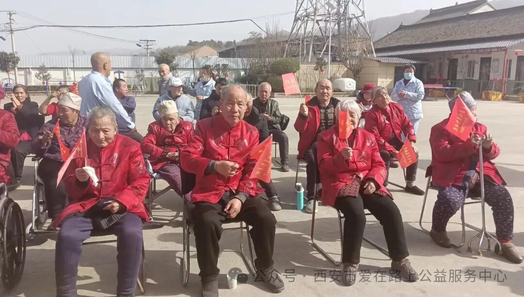 3月7日下午,西安市爱在路上公益服务中心的志愿者来到周至县马召镇福康托养中心组织开展“爱心助困,传递温暖,学习雷锋精神,争当志愿先锋。”志愿服务活动。为残障老人过集体生日和文艺演出,用实际行动践行雷锋精神,让老人们感受社会大家庭的温暖。