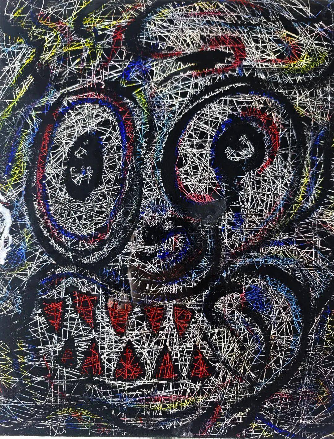 我在绘画在创作过程中,间接吸收了中国的传统傩文化。那何为傩文化呢?《说文解字》中说,见鬼惊骇,其词曰傩,他说古老祖先发出驱赶魔鬼野兽发出的恐吓之音。我们身处现代自然不惧魔鬼野兽。但我们身处食物链最顶端的时候。那魔鬼野兽何在?我想我们看着世界这面大镜子时,或许真的会猛然惊骇,发现了魔鬼。