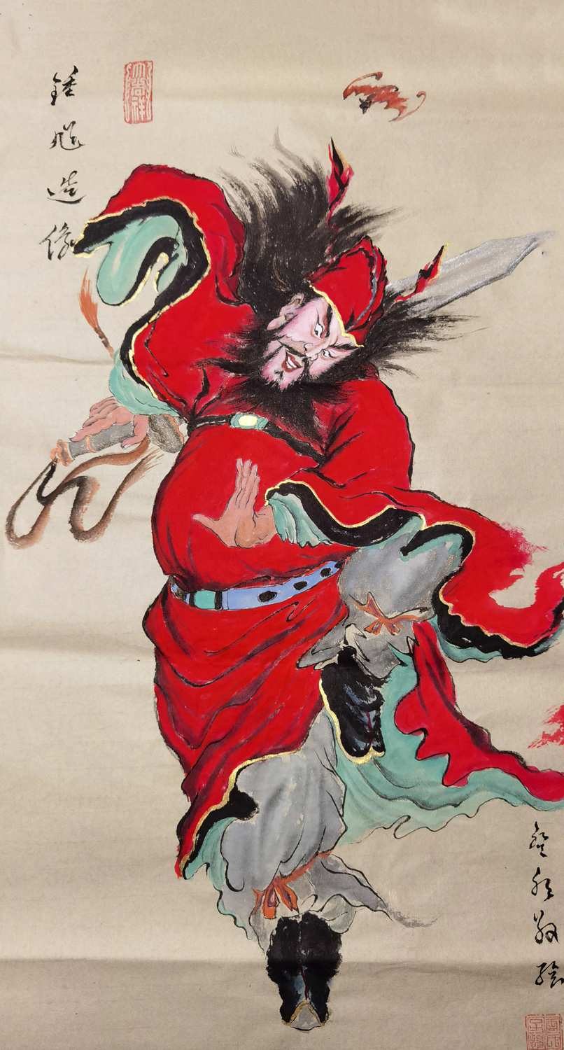 云子扬先生的画作,充满了浓重的色彩和夸张的造型,却又不失经典塑造的还原。他笔下的钟馗,或威武雄壮,或慈祥庄重,无论是怒目圆睁还是微笑含颦,都展现出了钟馗独特的神韵。他的财神系列,更是将财富与吉祥的寓意融入其中,让人感受到浓厚的喜庆氛围。而观音系列作品,则以其慈悲为怀、普度众生的形象,让人心生敬仰之情。