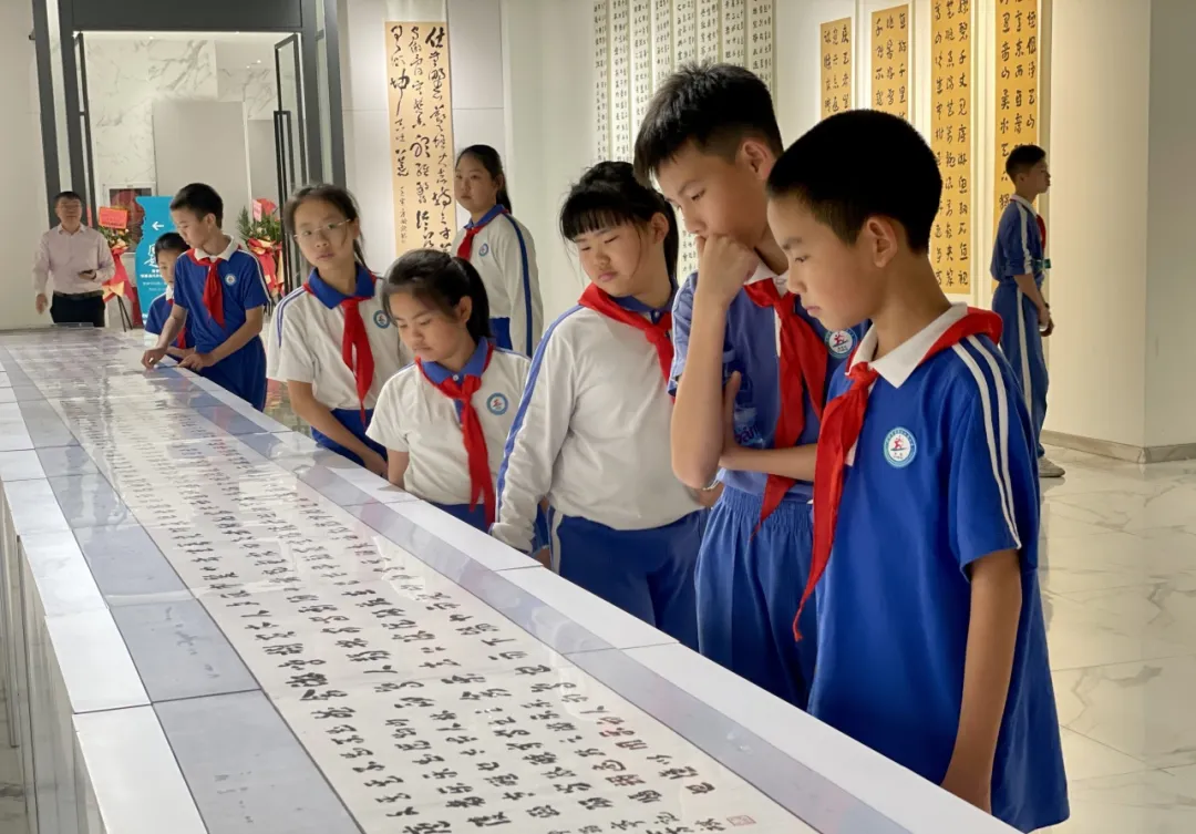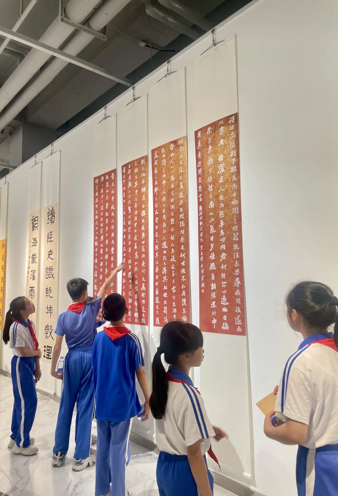 在这个春风拂面、绿意盎然的季节里,为弘扬中华优秀传统文化,进一步提高学生的审美情趣、艺术鉴赏力和文化素养,让学校美育拓展有更高更远的空间,2024年3月26日,红星小学邱梦旋专职副书记带领书法社团的师生们一起走进宝安区美术馆参观“龙开盛世·墨扬国风--方斌书法艺术展”。