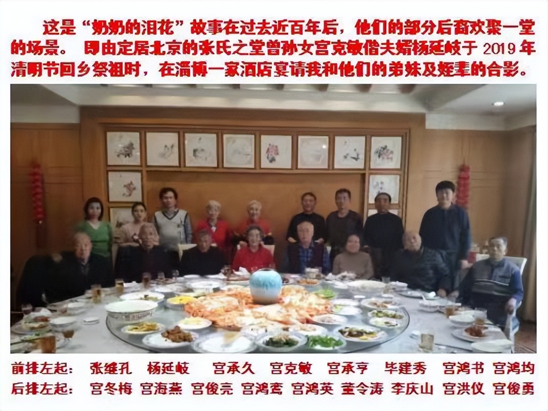 天亮了,解放了,张氏李氏终于熬出了头。我清晰地记得,在我大概六七岁时,有一次从张氏门前路过,见她以一种特殊而又特殊的目光直勾勾盯着我,并且眼里噙着晶莹剔透的泪花,好像巴不得要把我攫取过去一样,对此我有些害怕。回家后告诉奶奶,奶奶却是一脸惆怅,眼里同样噙着晶莹剔透的泪花,也同样以那种特殊而又特殊的目光看着我,而久久不发话。最后只是“唉!”了一声,说了一句“别害怕,你这大奶奶可是个大好人啊。”从此后,两位奶奶那奇特的目光,晶莹的泪花,永远地定格在了我的脑际之中,而她俩为什么会这样,我却浑然不知。对此我曾猜测过,苦恼过,对那些传言也曾将信将疑过┅┅直到迟迟读到了这本《宫氏族谱》才略知一二。
