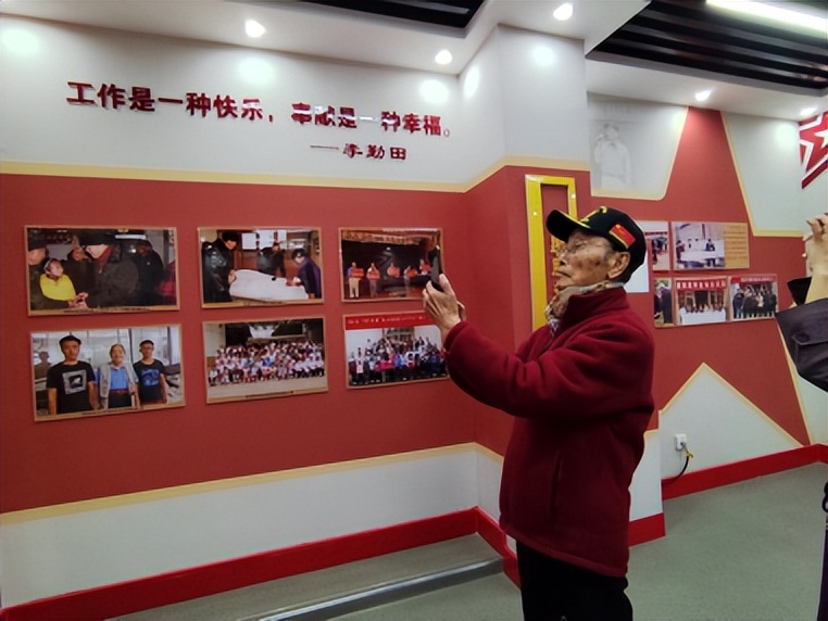 参观中,李勤田同志的挚友、94岁的抗美援朝老英雄孙广瑞神情凝重,不断拍照。