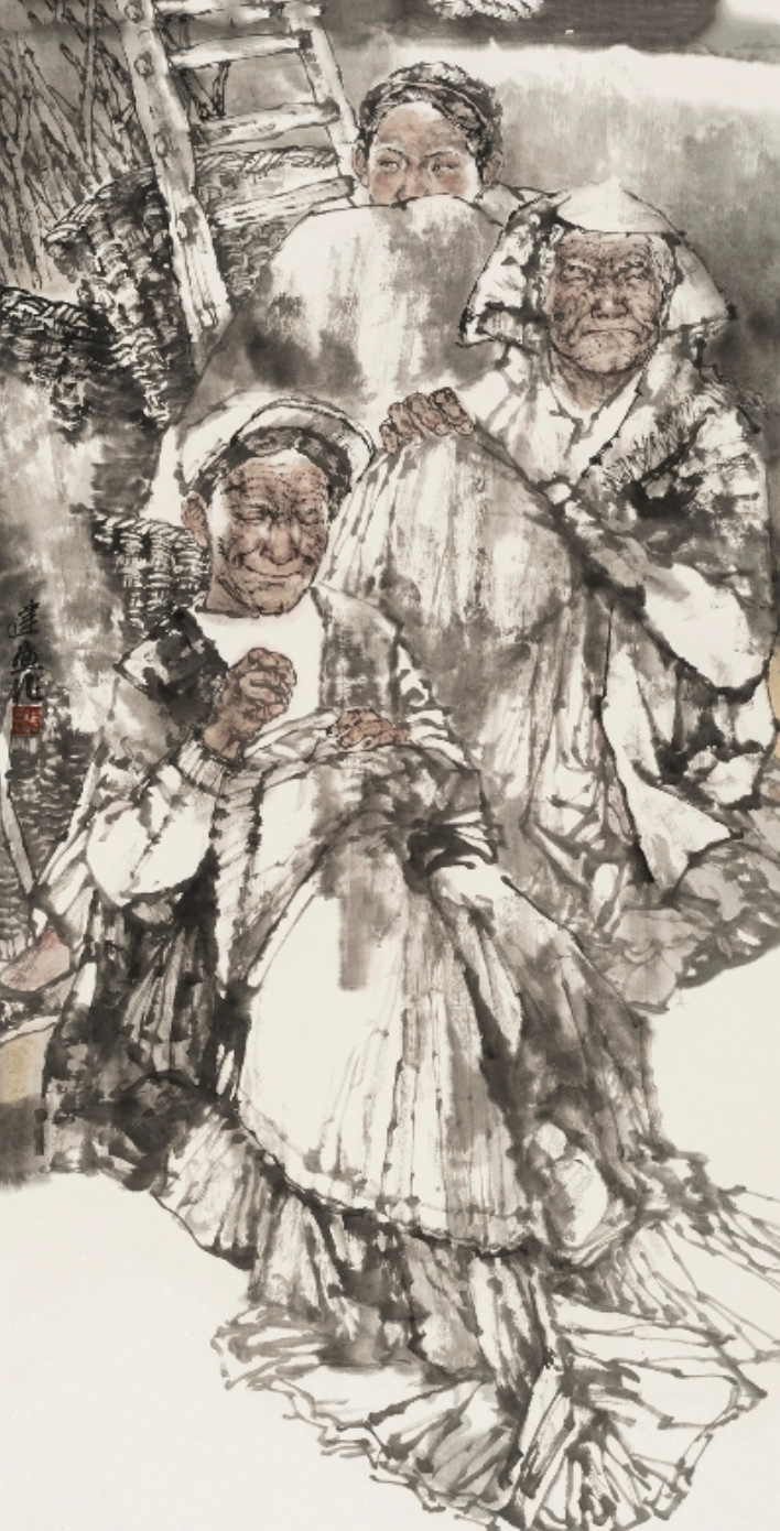 姚建广先生的画作之美,首先体现在他精湛的造型功底上。他的人物画,无论是老者还是孩童,都刻画得栩栩如生、生动传神。他的笔下,人物形象结实有力,线条流畅而富有节奏感,让人感受到一种强烈的生命力和艺术感染力。