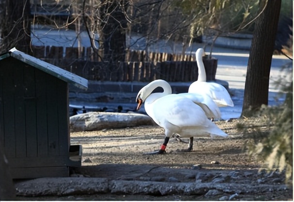 几只天鹅斜穿马路