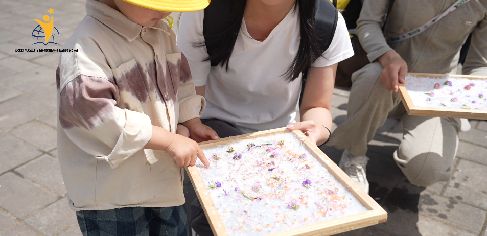 所以,大家不仅游览了古镇,还在现场体验了古法造纸的乐趣。小朋友和爸爸妈妈一起动手,均匀打浆,小心翼翼抄纸,再尽情发挥想象力,使用干花、贴纸和亮片等,对即将成型的纸张进行装饰。大手和小手一起动起来,共创了一幅幅美丽可爱的纸张。