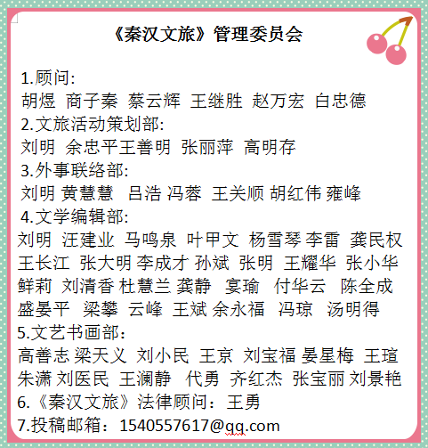 朱军,男,1985年开始发表作品,中国散文学会会员,陕西省作协会员,陕西省原地税系统文学创作协会主席,汉中市作协副主席。汉中市赤土岭文协微信官网首批驻站作家。先后出版散文集18部,长篇小说6部,小说集9部,诗集12部,童话集1部,累计1200万字。温和执毅,笃守文心。坚守人生,自尊放达,在自然与灵识中熏染墨香,在抒写中行走,提升生命的质量。
