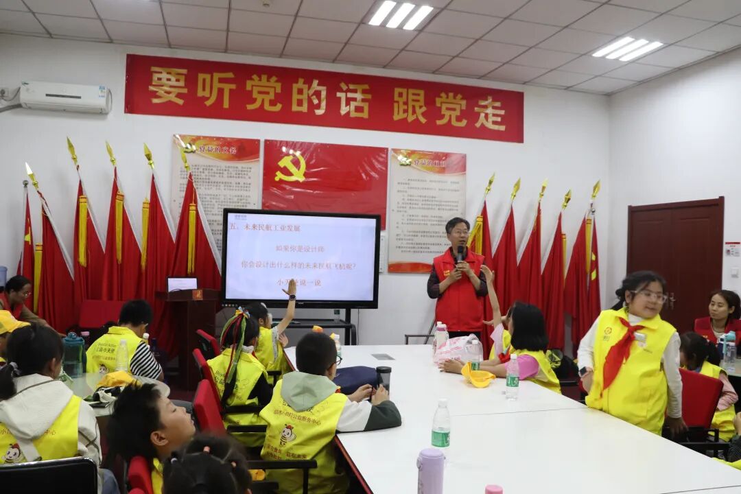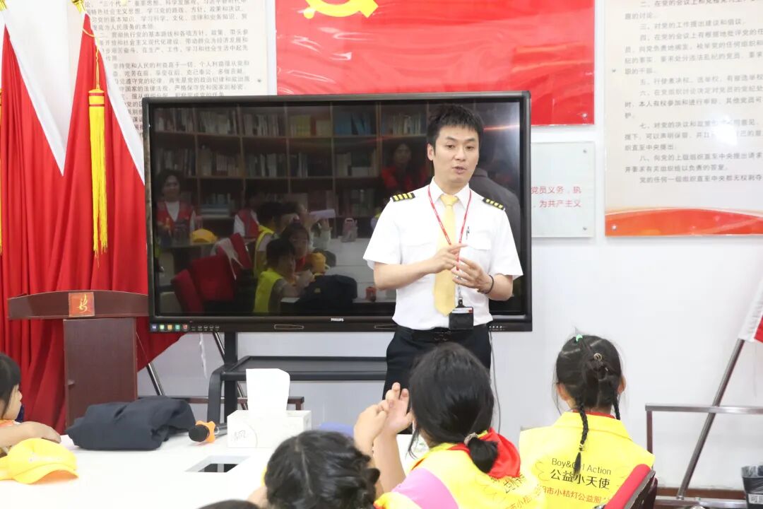 小天使唐浩然同学说:”莱特兄弟制造的飞机称为飞行者1号。“郭恩伟为小天使讲解中国近现代民航业发展,中国客机的发展历程:购买、仿制、组装、购买西方飞机、创新发展研究制造先进飞机。接下来,郭恩伟为小天使普及民航安全知识。讲解了多起飞机事故,包括飞机故障引起的、人为失误引起的、犯罪分子和恐怖分子引起的、没有明确线索失踪的等等空难。郭恩伟还为小天使们讲解了未来民航业发展。客机的发展:更大、更远、更快、更安全,更低成本、绿色低碳。郭恩伟继续提问道:“如果你是设计师,你想造什么样的飞机?”