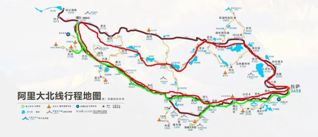 红色线路为阿里南线+中北线,也就是我们说的阿里大环线