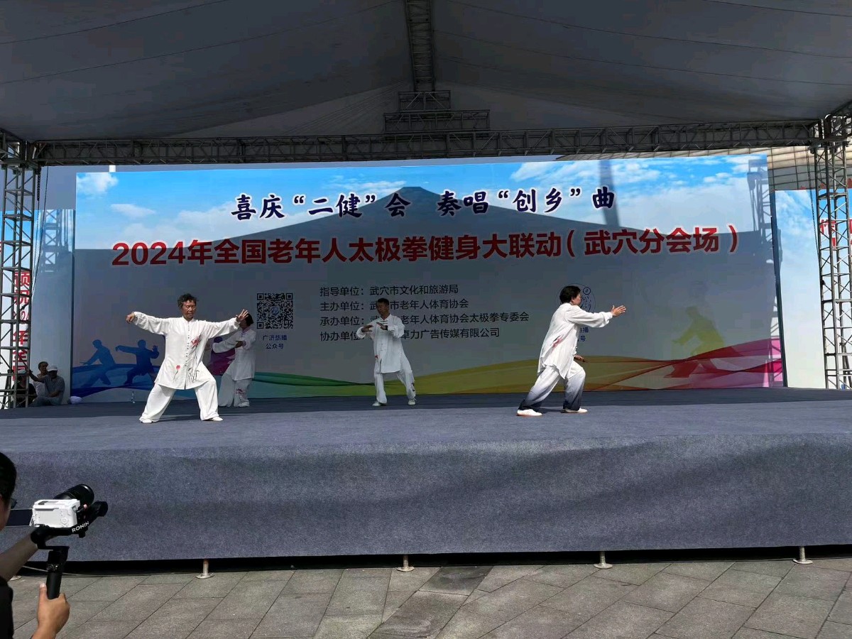 代表黄冈市参赛队员的汇报表演,背后凝聚着无尽的汗水与努力。他们的太极八法五步,如灵动的精灵在舞台上跳跃,展现出武穴市太极人的卓越风采。