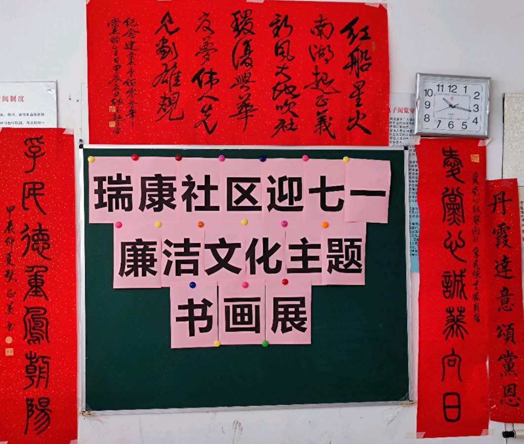 瑞康社区深入开展“辰兴十干,五解五促”主题活动,发挥基层社区组织的作用,做好基层治理工作。以书画艺术为媒介回顾了中国共产党艰苦创业的光辉历程,歌颂党的丰功伟绩,进一步弘扬革命精神,传承红色基因,同时也为辖区居民群众打造了一个相互切磋、交流提高的平台。