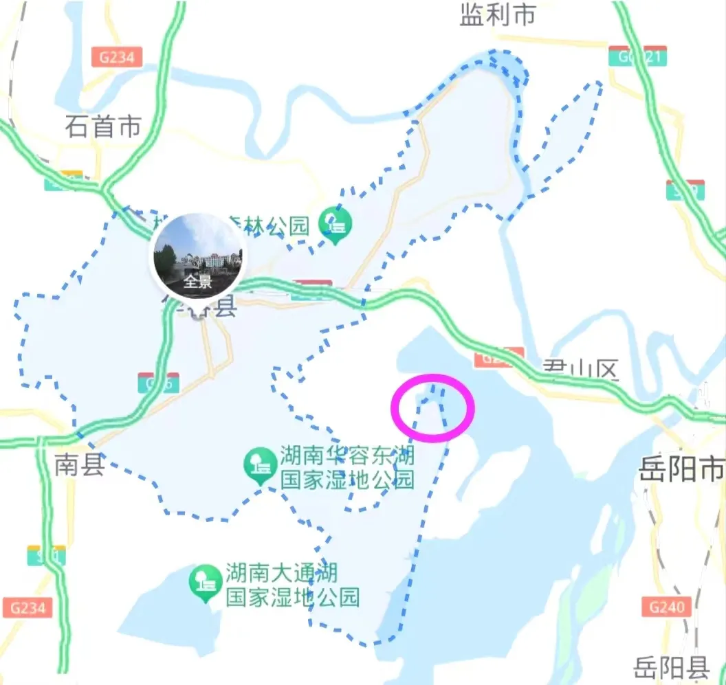 【今日的岳阳市华容县和君山区大致地理/来自截图】