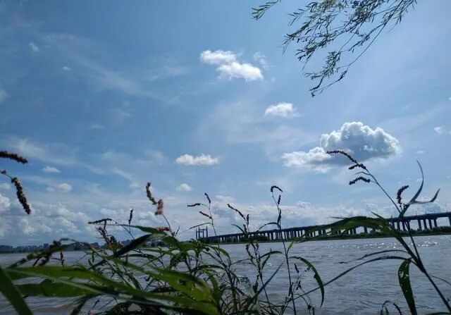 在盛夏时节,江岸上成行挺拨的垂柳随风起舞,给市民带来丝丝清凉,树下草坪,像绿色地毯,尽情地亲吻着大地,各种小花争奇斗艳,生机勃勃,引来蜜蜂和蝴蝶翩翩起舞,让人们感到无限惬意,感受到生活的无限幸福美好。