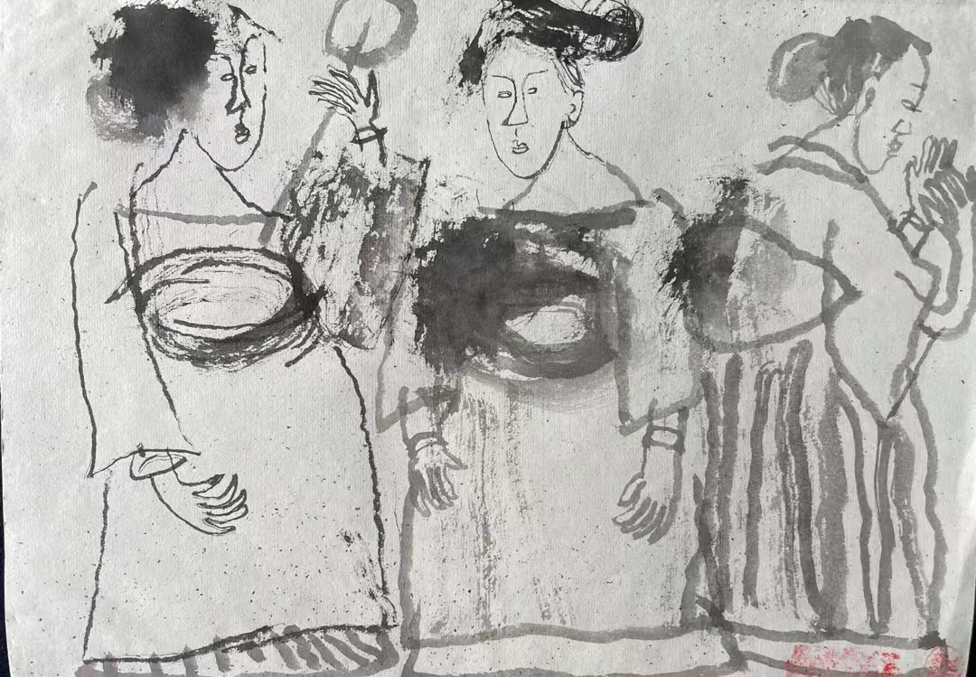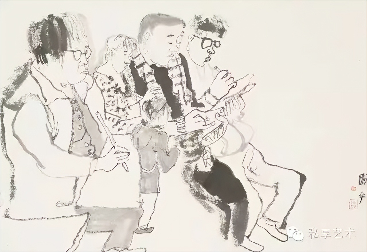 隋牟先生的画,极简与深邃完美融合。他用三笔两笔勾勒出万千气象,那看似不经意的点、线、面,实则蕴含着千锤百炼的技艺与深不可测的情感。每一滴墨都仿佛有了生命,在宣纸上自由舞蹈,交织出一幅幅层次分明、气韵生动的画面。这种对笔墨的极致掌控,展现了他高超的技艺,更透露出他对艺术无尽的热爱与追求。