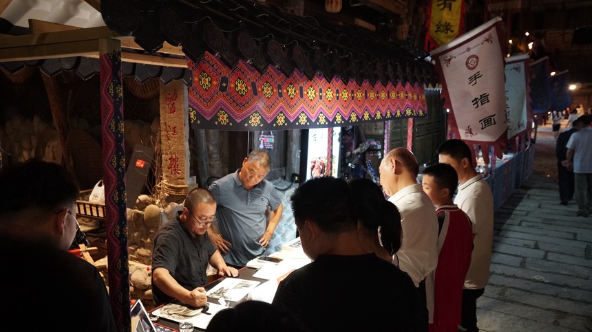今年以来,慈利县手指画艺人在张家界大峡谷、重庆磁器口和洪崖洞、北京王府井、南京夫子庙、湘西凤凰古城、浙江杭州西湖景区等地开设手指画艺术展览区和工作室,吸引10余万游客驻足欣赏和学习,通过指导游客亲手制作纪念品,满足个性化需求,创作作品2万余幅,带动100余万元经济效益,推动手指画艺术的广泛传播和纵深发展。