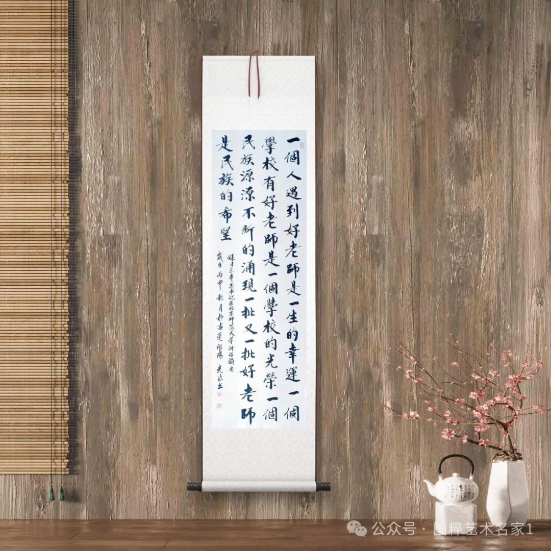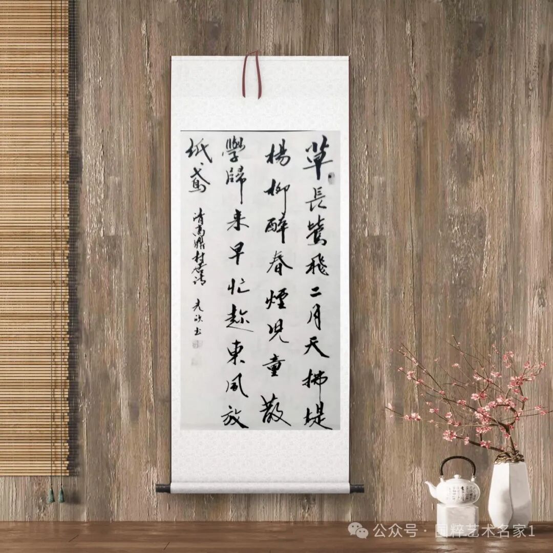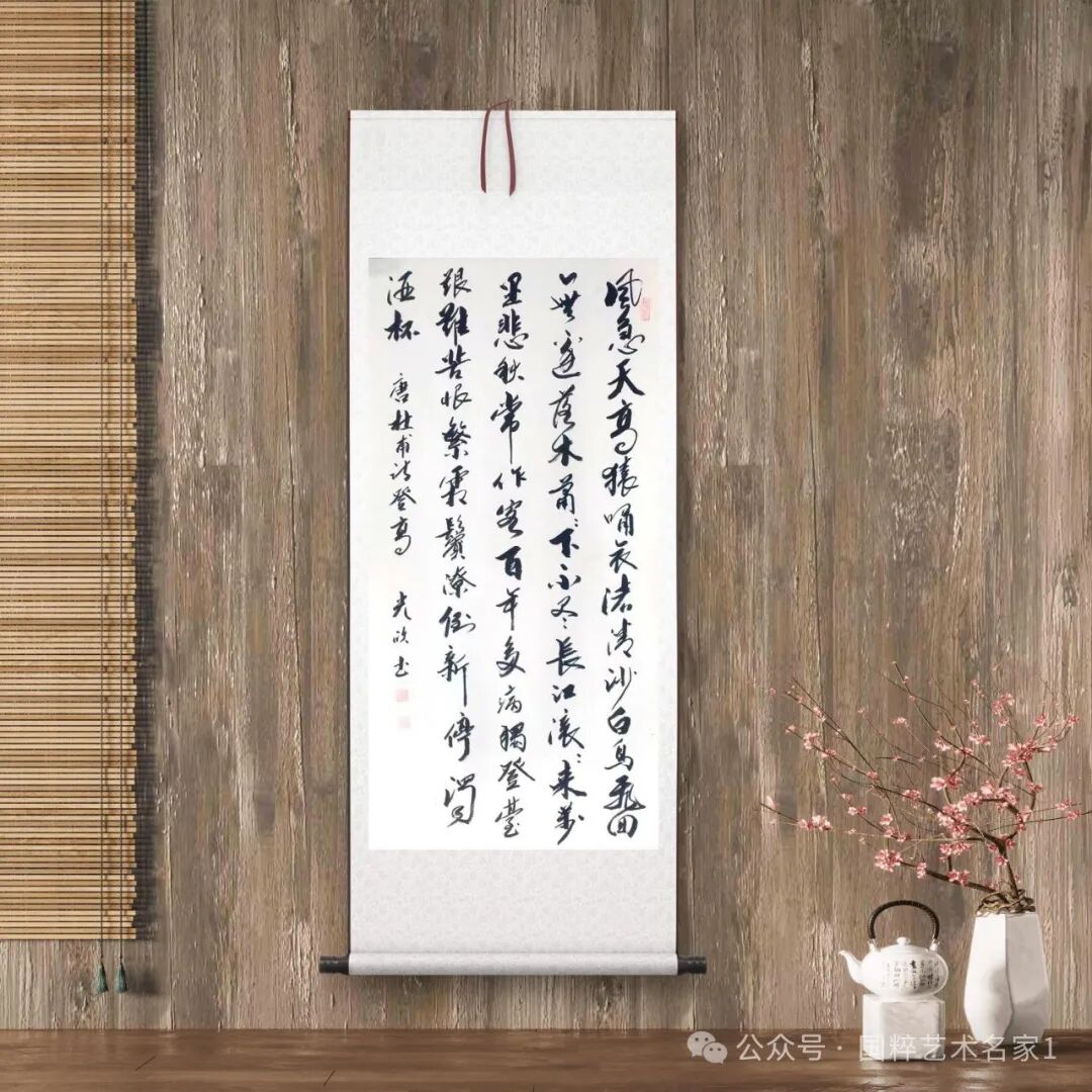 马光欣先生作品运笔浑厚凝重,含蓄奔放,笔墨收放自如,不渝规矩,线条粗细枯润,变化有度,字势如字义,通篇字体展阴阳之刚柔,开雄逸之气势。显然,先生是成功的达到了形意结合的行草境界,他以干裂秋风,润含春雨的笔墨,为行草呈现了一种斗酒十千恣欢谑的艺术豪情,行草书法的语境和气势也由此得以展现,实乃严谨疏放而不失稳正洒脱!