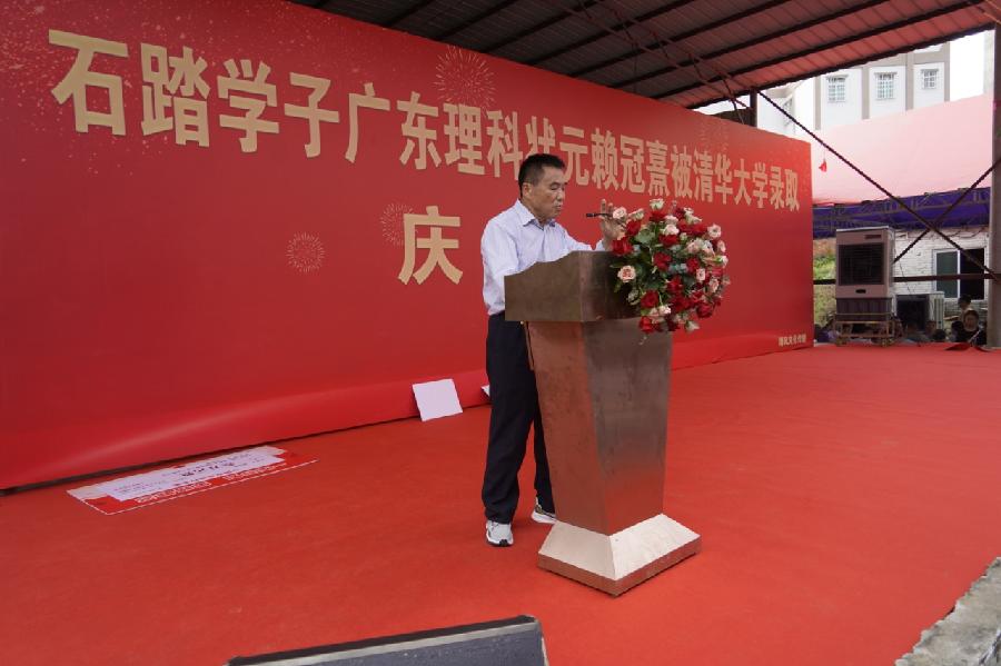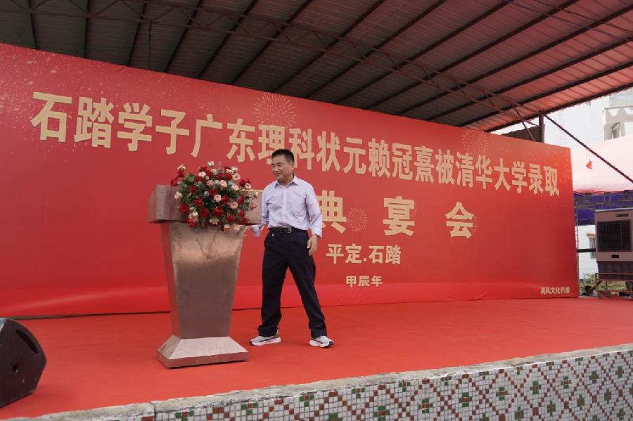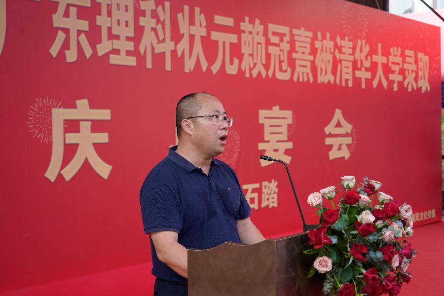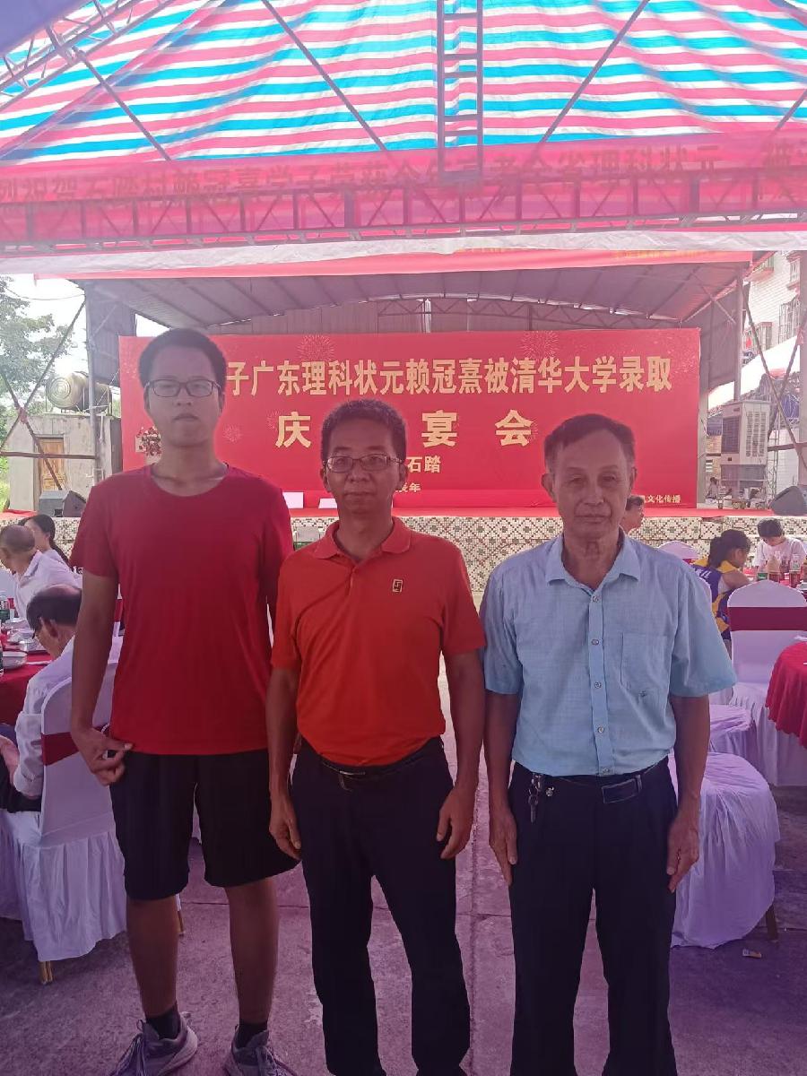 2024年8月9日(农历甲辰七月初六)14.00至16.00时,2024年高考广东省物理类状元赖冠熹父母双亲暨石踏村赖氏宗亲在化州市平定镇翰堂村委会石踏村举行“感恩升学宴会”,出席宴会的老师、乡贤、宗亲、嘉宾有:化州市区培养赖冠熹学子成长的相关小学、中学的老师、平定镇中、小学校、商会、乡贤、宗亲会相关负责人、老师及各地赖氏宗亲代表、社会各界友好人士共500多人,有关负责人在宴会上致辞祝贺和状元赖冠熹及父亲赖泽明,分别在会上作了发言,部分企业界代表分别给状元颁发了奖学金。宴会充满着重文、重教、重才、热情、祥和、喜庆、隆重的气氛。作者特赋诗一首,祝贺宴会取得圆满成功,诗文如下: