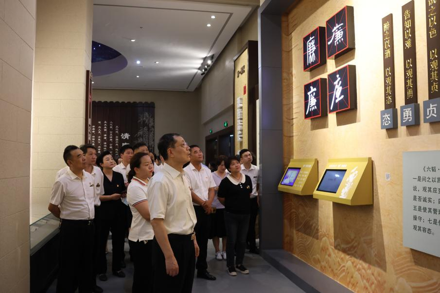 在讲解员的引导和讲解下,依次参观了中国古代廉政文化展、中国共产党党风廉政建设展、新时代河南全面从严治党成果展、中国共产党人的精神谱系展、中国共产党人的家风档案图片展等。大家认真聆听,不时驻足,一边学习、一边思考,深深感受到新时代新征程全面从严治党的坚强决心。