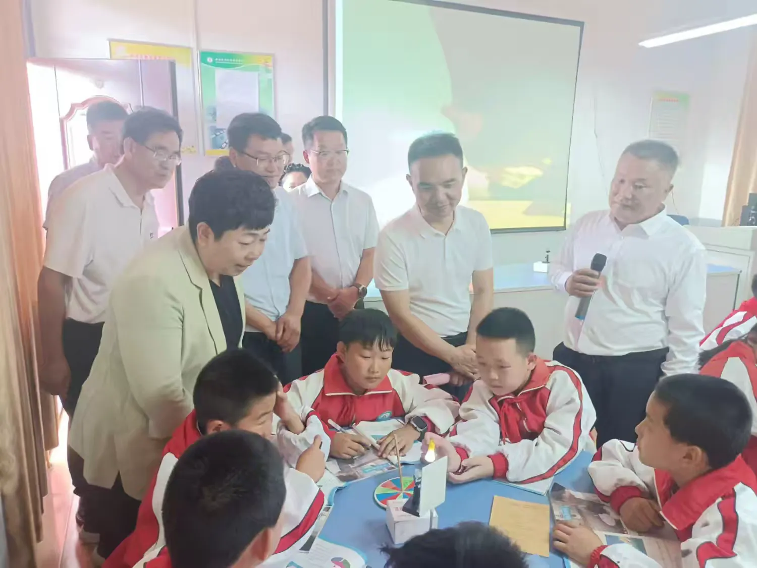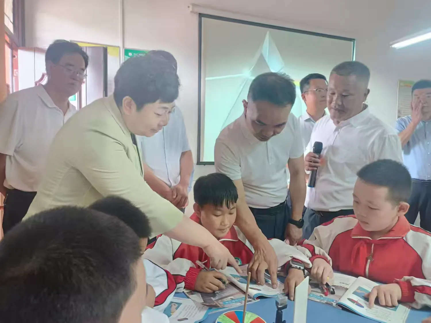 调研团队听取了李校长的报告,观摩了科学实验课和美术课。参观了书法教室和学校新建的食宿楼,翻阅了相关的档案资料,并与校委会领导进行了亲切地座谈,唐芳副主任对学校取得的成绩予以高度肯定,并对今后教育教学工作提出建设性建议,对学校的后期发展提出了更高的目标和要求。