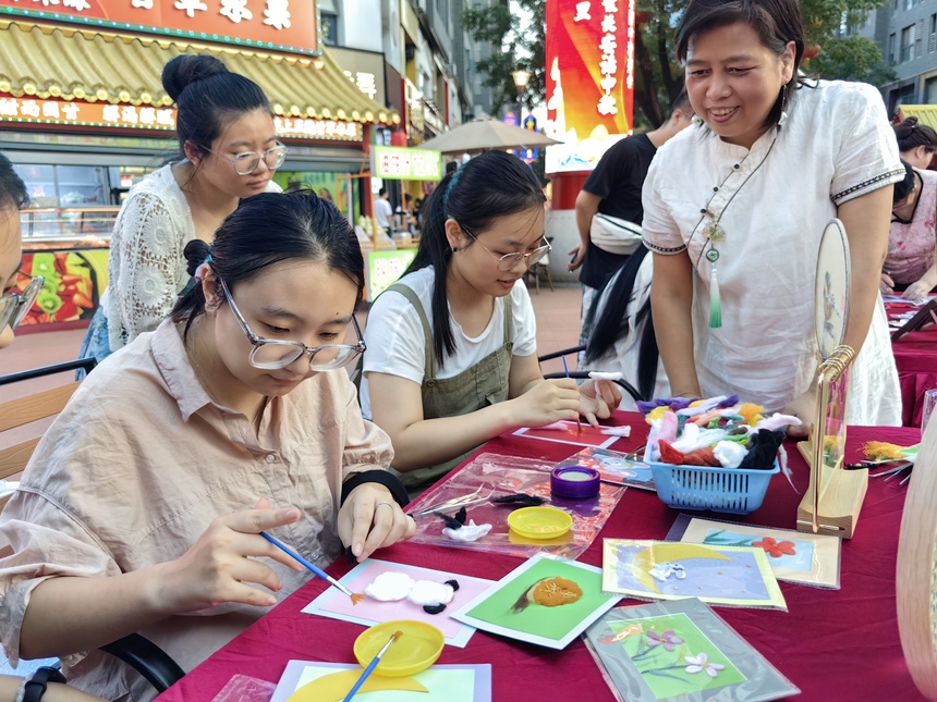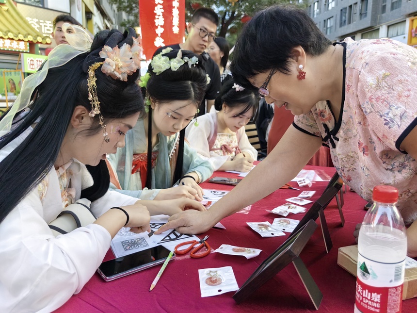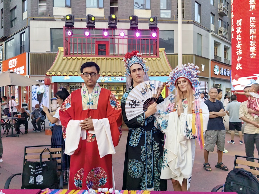 民乐园文化街是陕西省唯一入选中国文联批准建立的第三批“文艺两新”集聚区实践基地。值此中秋佳节,来自10个国家的留学生与我国众多青年学生欢聚一堂,共庆团圆、赏鉴非遗。