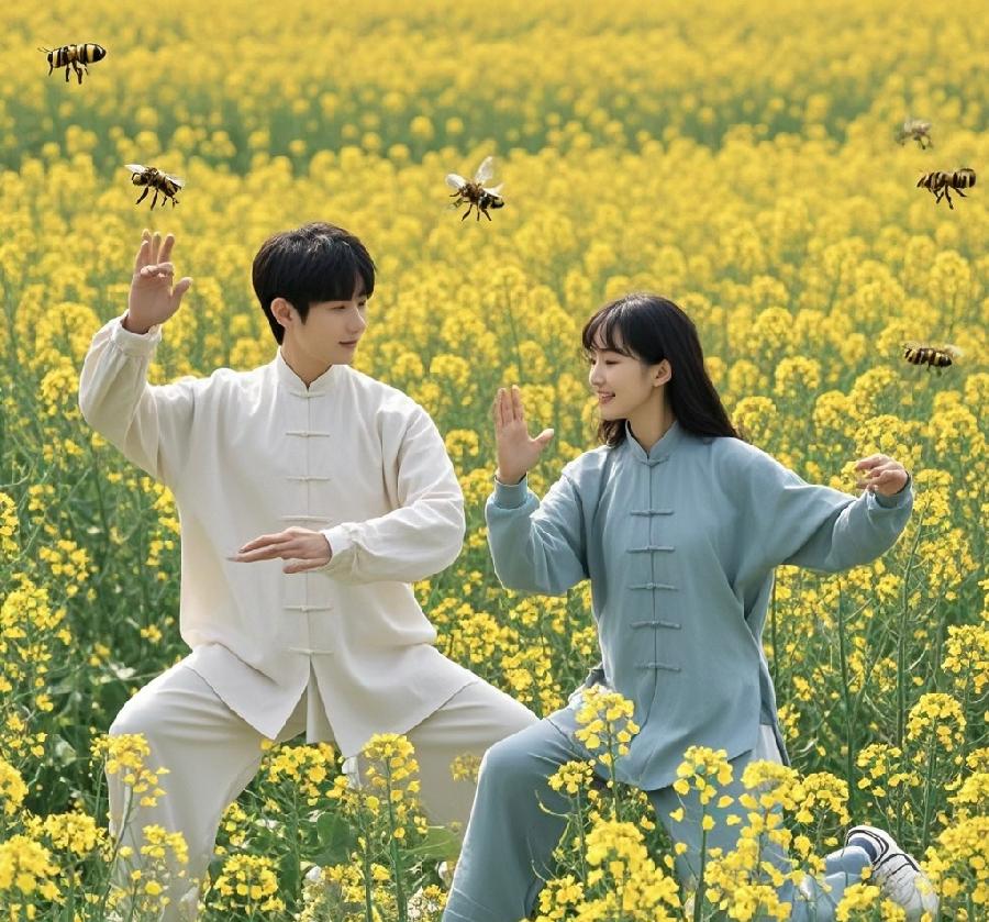 漫步于金黄灿烂的油菜花田间,油菜花盛开如金色海洋,微风拂过,涌起层层金色浪涛,绚烂夺目之色令人心醉神迷,仿佛置身童话世界。我们的动作欢快而灵动,满溢喜悦与感恩,恰似与油菜花共同欢庆生命的绚丽与璀璨。脚步在花间轻盈穿梭,宛如与油菜花一同曼舞的精灵,洋溢着生机与活力。活泼的招式让人仿佛化身为花海中的灵动精灵,充满俏皮与活泼。我们呼吸着油菜花浓郁馥郁的芬芳,那芬芳的花香让人心旷神怡,仿佛所有烦恼与疲惫都被抛诸脑后,只剩下内心的宁静与喜悦。我们感受大自然的慷慨馈赠,心中盈满对生命的热爱与敬畏之情。于此,我们用心体悟每个动作的起承转合,让身体动作与内心意念完美相融,与油菜花的蓬勃生机相互呼应,感受生命的美好与力量,领悟生命的真谛在于绽放自己的光芒,奉献自己的价值。