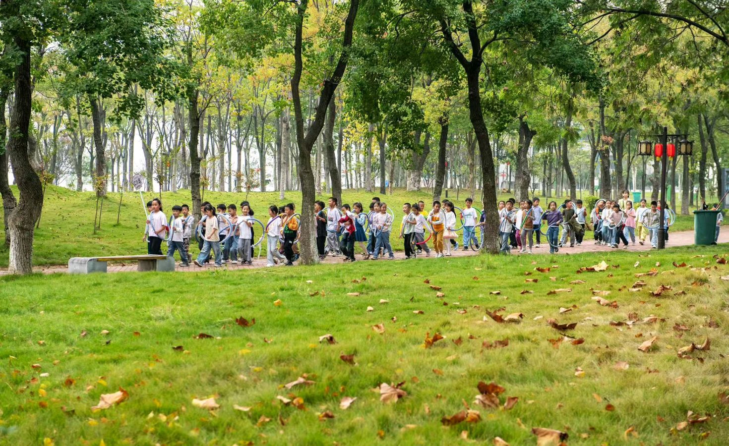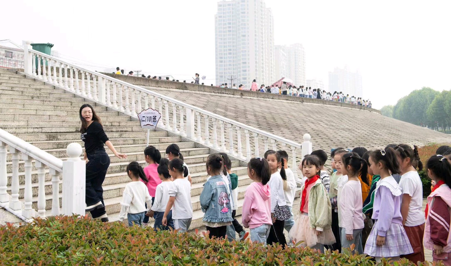 正在这时,孙女从人群中欢快地钻了出来,她可是二(10)班的小可爱呢。孙女嘟囔着小嘴,那模样可爱得就像一个萌萌的小团子,娇俏的她如同一个可爱的小精灵在抗议:“爷爷又偏心,不到我班拍。”此时,老年大学摄影班的徐正平老师与“我”正好在此实地考察,为下午同学们来滨江公园拍摄实景踩点。徐老师看到她这副模样,连忙温柔地抚摸着她的头,轻声说道:“走,我们到你那去。”孙女一听,立刻开心得像一只欢快的小鸟,活蹦乱跳地领着我们向她的班级走去。