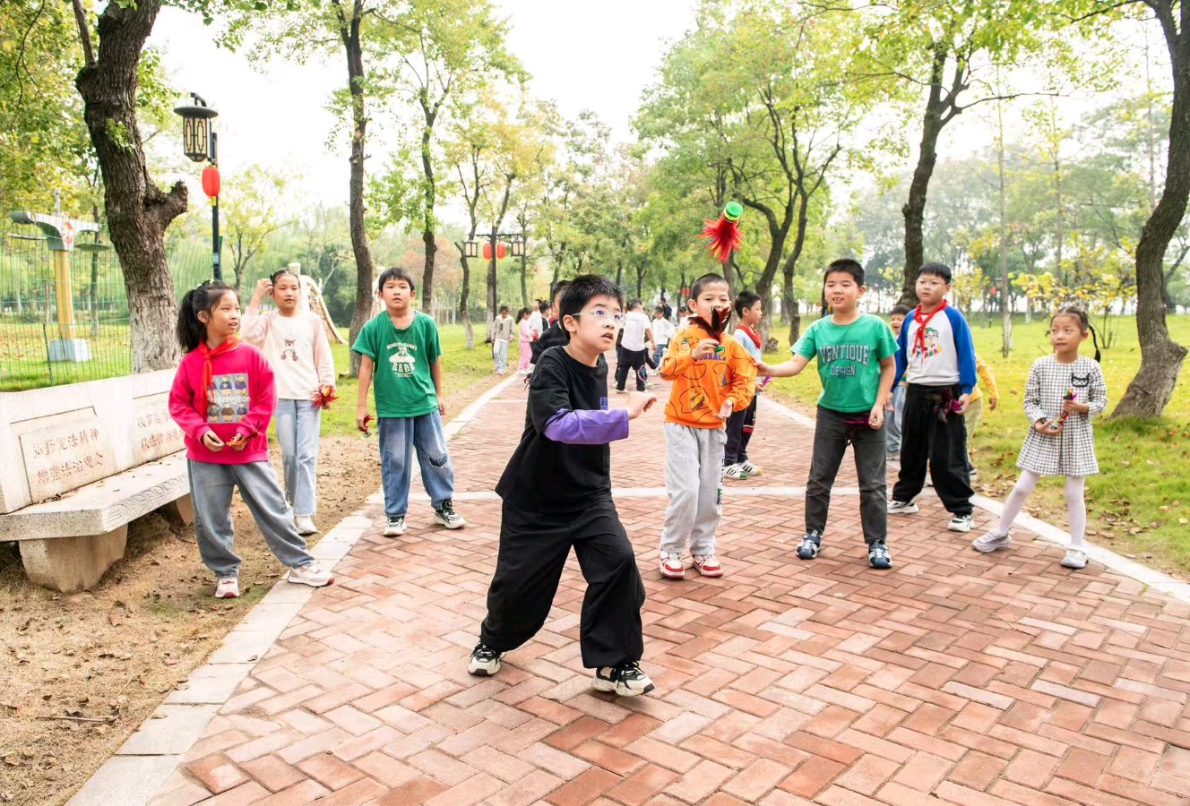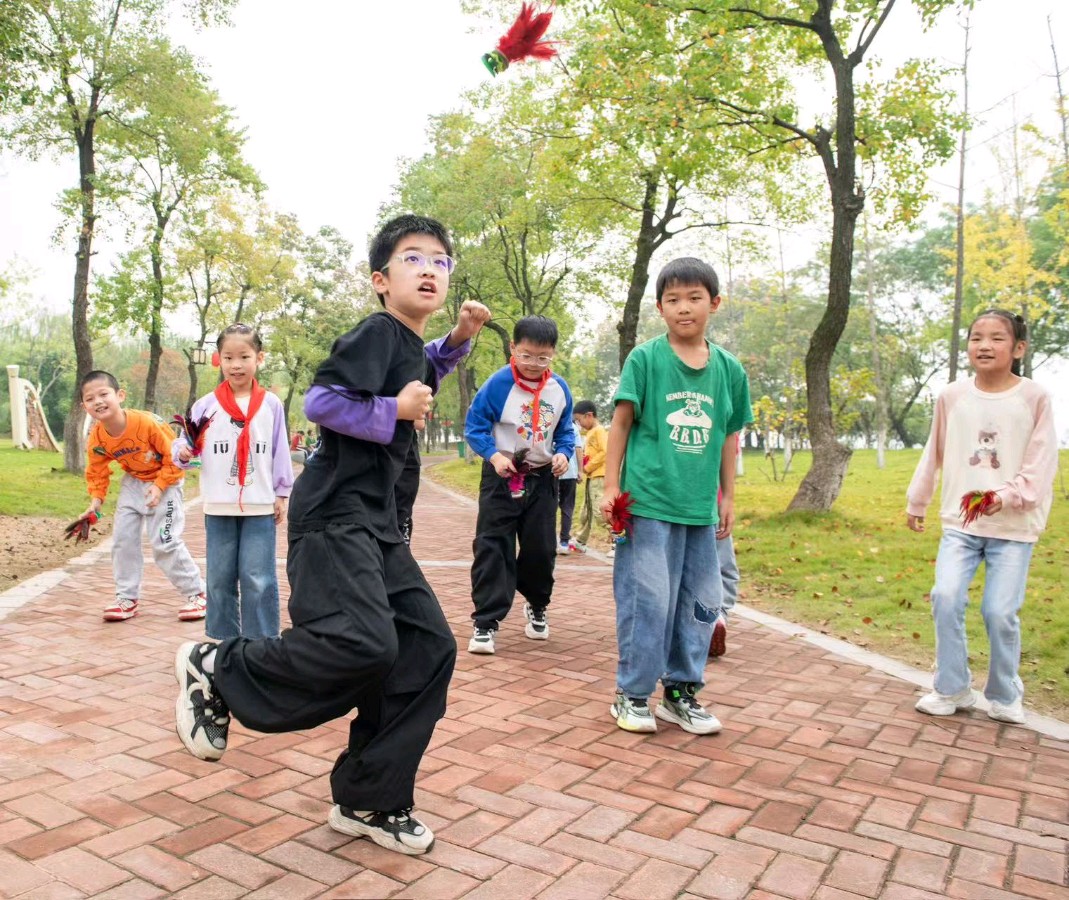 滨江公园内,欢腾的气息弥漫,青春的活力仿若璀璨星辰般光芒四射。瞧,三(1)班的孩子们沉醉在踢毽子的欢乐海洋。那彩色的毽子宛如灵动的蝴蝶仙子,在孩子们的脚边轻盈地上下翻飞,时而优雅地跃起,如翩翩起舞的精灵;时而俏皮地旋转,似欢快跳动的音符。孩子们的眼神专注而明亮,恰似熠熠生辉的星辰,紧紧盯着那跳跃的毽子。他们的小脚仿佛被赋予了神奇魔力,每一次踢击都恰似敲响了快乐的鼓点。那小小的毽子,似被施了奇妙魔法,在孩子们的默契配合下,舞动出最为绚丽的弧线,仿若一道斑斓的彩虹在阳光下闪耀光芒。