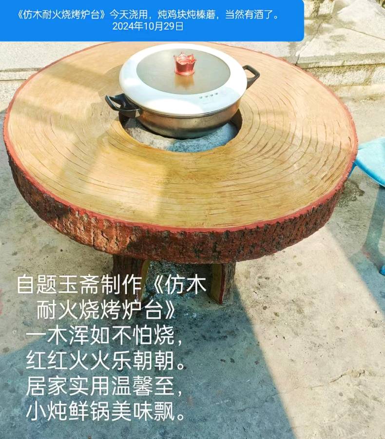 自题玉斋制作《仿木耐火烧烤炉台》