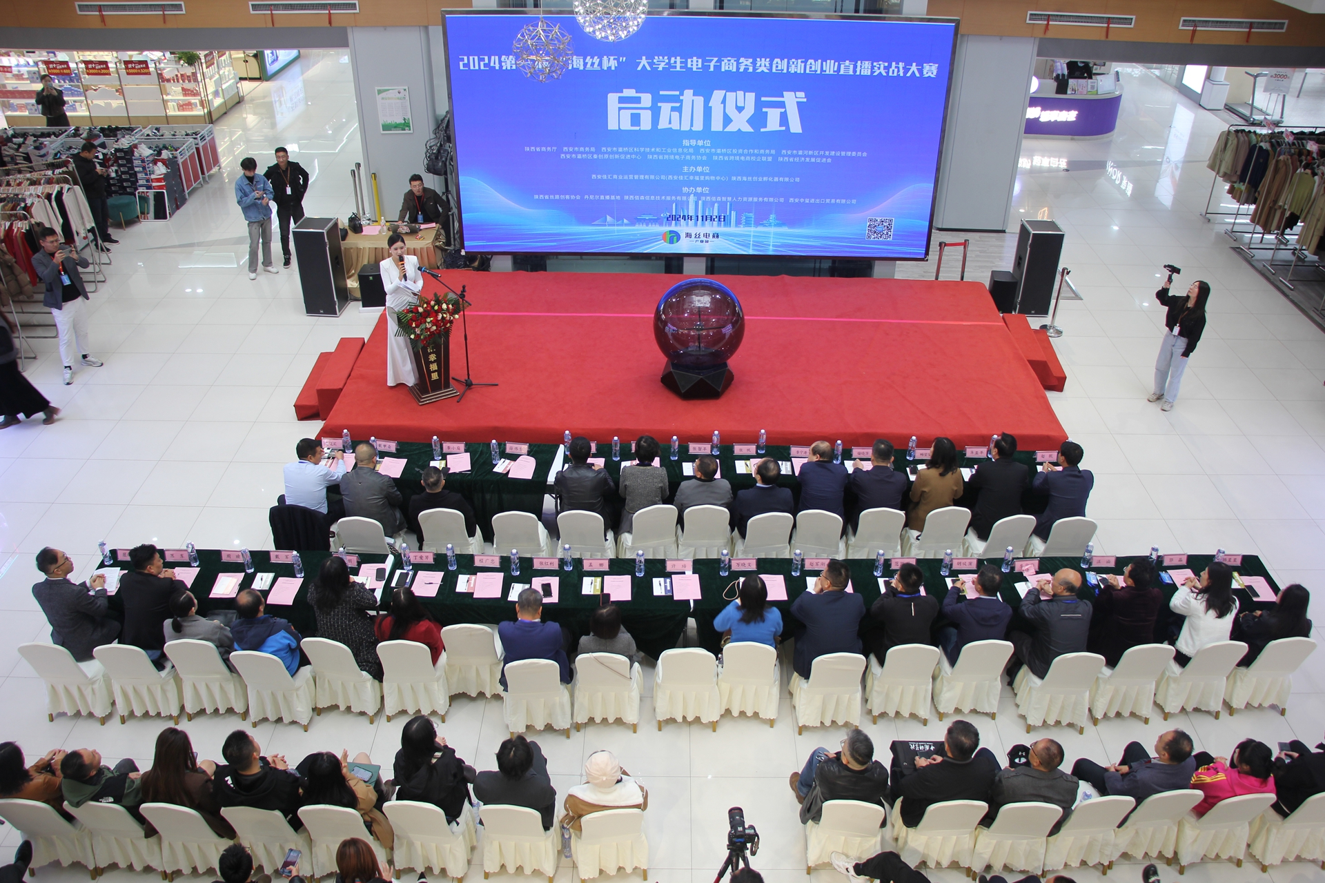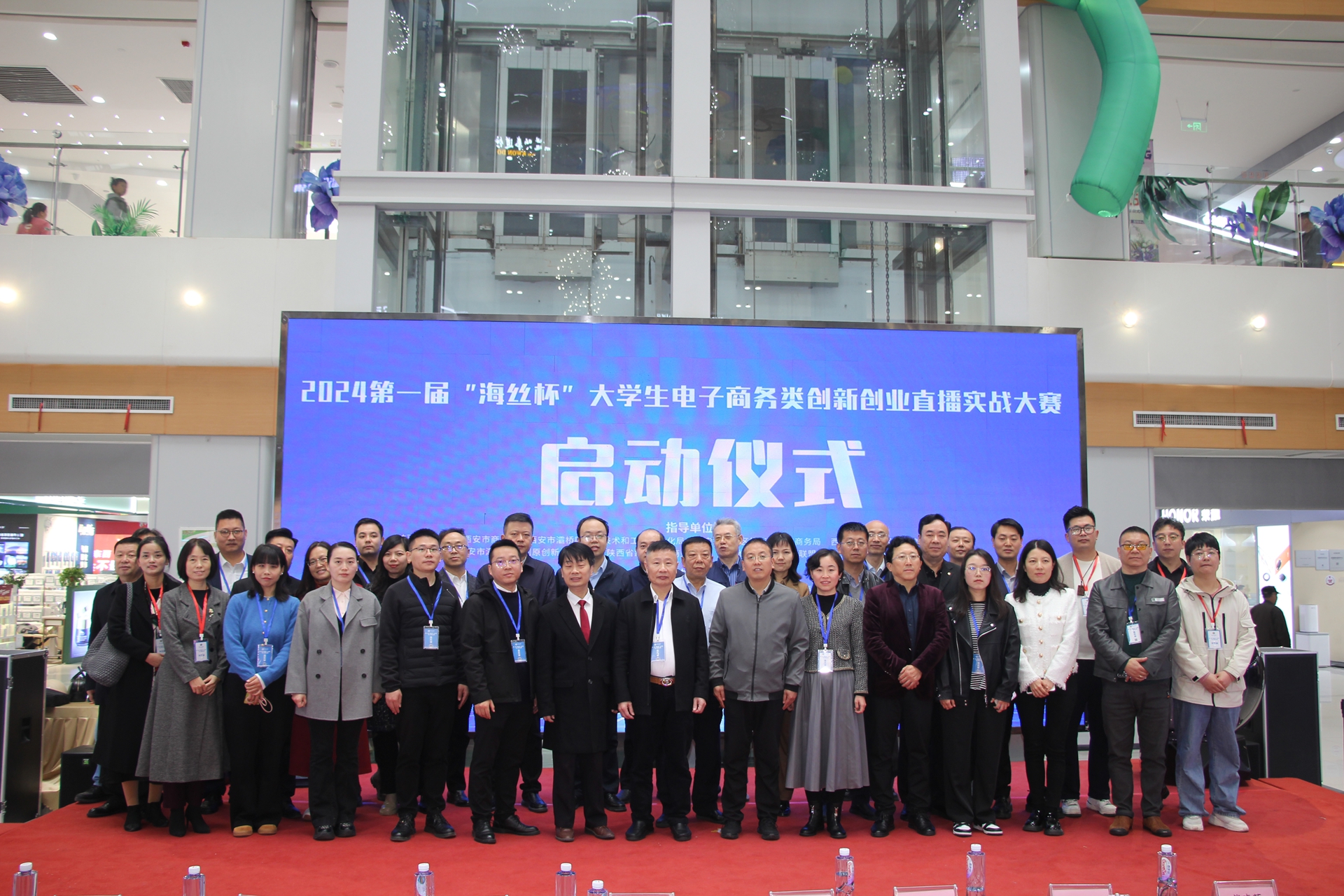 来自省、市、区、街办、社区相关领导及部门负责人,参与赛事大学领导、专家,相关商协会会长,直播基地负责人,供应链、电商团队、供货企业代表,网红主播等以及西安交通大学、西安电子科技大学、西安财经大学、陕西理工大学、等三十所院校的师生代表出席了大赛开幕式。