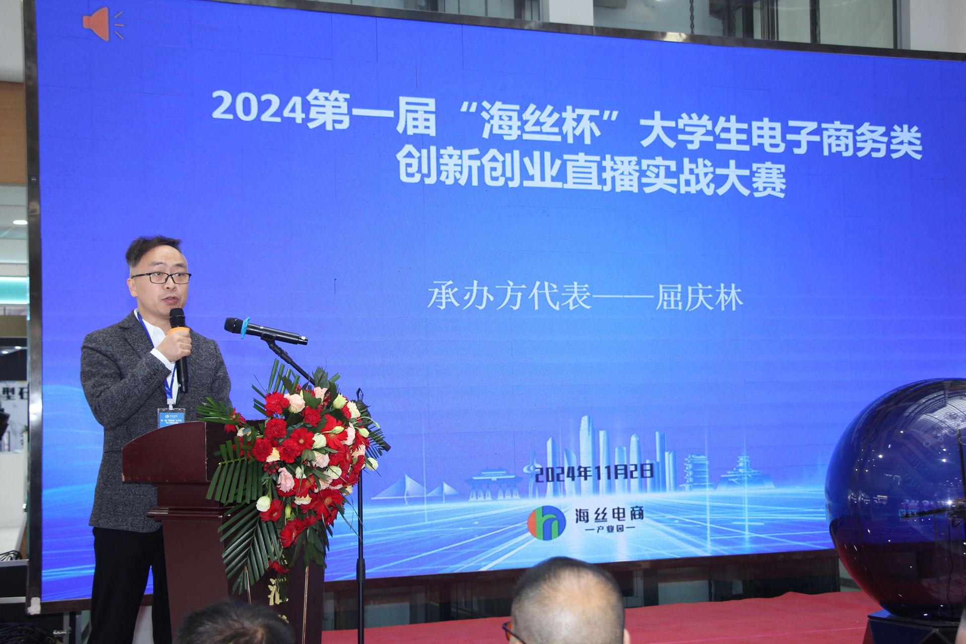 承办方代表屈庆林先生发言,阐述了承办此次大赛的初心,明确了评判标准和奖项设置。本次大赛将围绕直播产品、直播效果、成交额等多个维度进行综合考量,旨在全方位提升参赛者的直播实战能力。