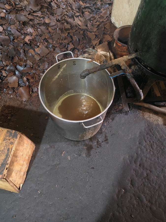 接着,这些炒好的茶籽被送入榨油机中,伴随着机器运作的轰鸣声,茶籽被碾压成饼状,而茶油则如细流般缓缓滴落,汇聚成一丝丝金黄色的液体。因为量少,初次榨取的茶油仅仅没过了桶底几厘米,但正是这一滴滴珍贵的茶油,凝聚了无数的心血与汗水,每一滴都饱含着对土地的敬畏和对生命的赞美。榨油机的每一次转动,都像是在诉说着一段段动人的故事,机器的轰鸣声和茶油滴落的声音交织在一起,形成了一曲美妙的交响乐。