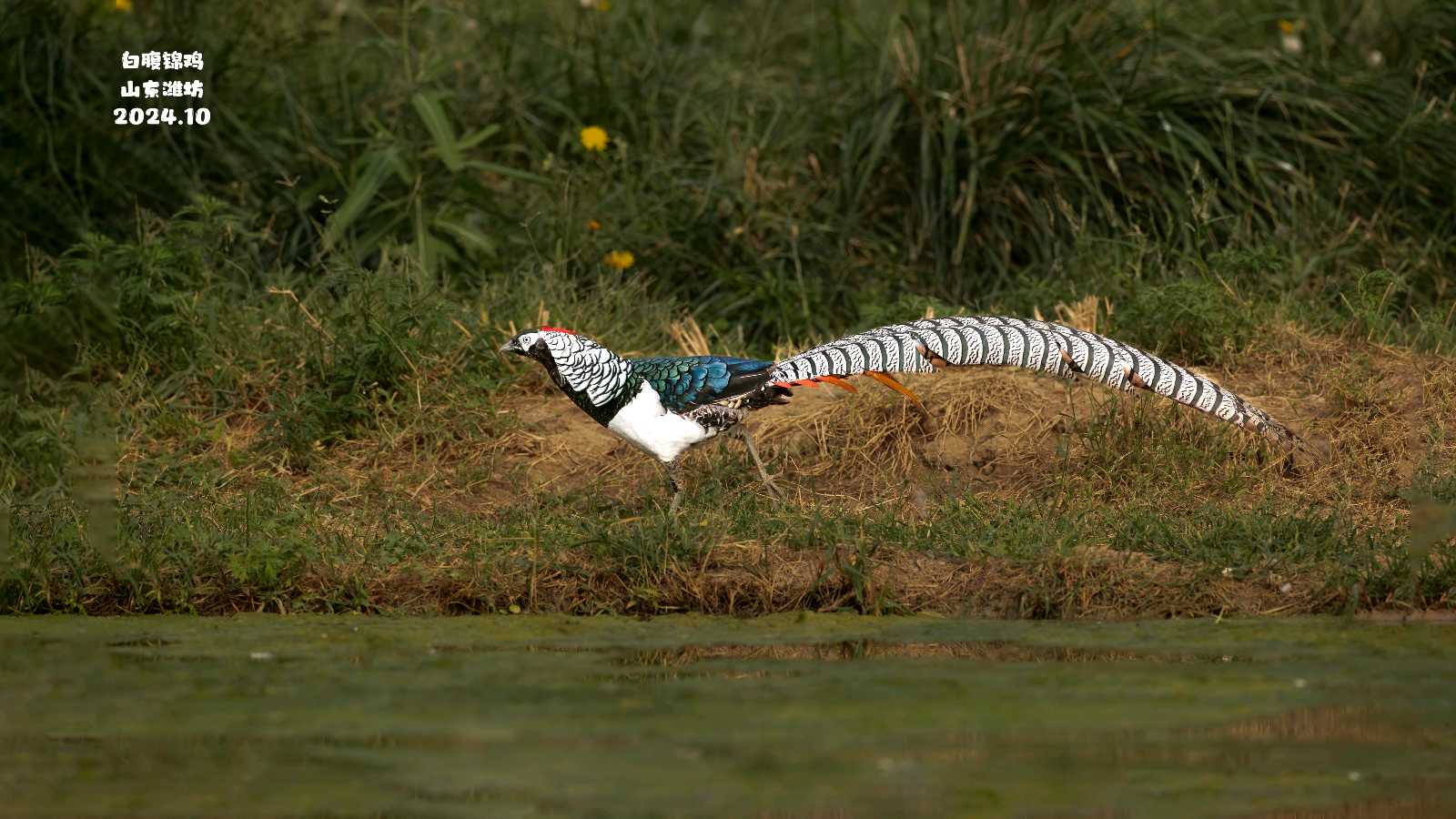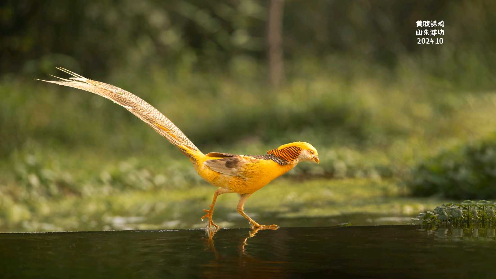 秀水青山翠影清,山鸡高雅似明星。靓装飘逸随风动,黄腹披身意趣浓。