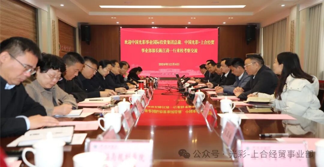 2024年12月4日,中国光彩事业国际投资集团、中国光彩﹣上合经贸事业部(光彩上合事业部控股集团)部长陈江涛一行到平顶山学院考察交流。校长郭秋平、副校长于长立、郑东丽及学校相关处室负责同志参加活动。