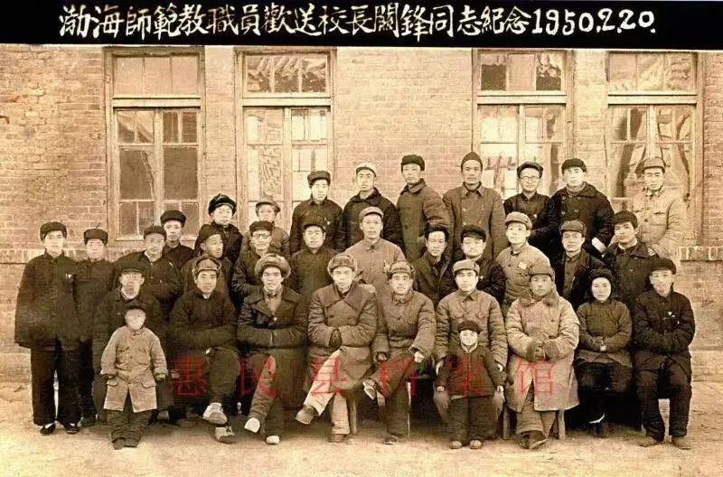 1944年1月,日本鬼子还未投降。为适应形势发展,中共清河区与冀鲁边区合并为渤海区。3月,建立山东渤海区行政主任公署。1945年10月,渤海行署所辖六个专署合并调整为四个专署。公署下设秘书处、财政处、民政处、教育处、实业处、司法处、工商局、公安局、粮食局等机构,渤海行署机关移驻惠民县。1948年10月,根据革命形势发展对人才的需要,渤海区行署根据上级要求,恢复师范教育,决定创办一所后期师范,并任命教育处处长关锋为校长,校址暂定于惠民城东北马画匠村,校舍则借用当地庙宇和民房。关锋,原名周玉峰,1919年7月生于山东省庆云县崔口镇周辛庄一个农民家庭。因是独子,尽管生活艰辛,父母仍然克勤克俭供其读书,一直供到在庆云县简易师范学校毕业。在校期间,他读到了一些进步书刊,并接触到共产党的地下组织,在党组织的培养下,1933年秋,刚满14岁的他就加入了中国共产党。由于他注重学习,工作积极,对上级党组织的精神理解透彻,贯彻得力,19岁时,他就担任了中共冀鲁边区乐陵县县委书记,真所谓自古英雄出少年。因地下工作的需要,1939年周玉峰化名关锋,也许连他自己都没想到,他会因关锋这个化名而出名。由于关锋学历高,组织能力强,又在实际工作中经受了锻炼,因而受到党组织的重视,1944年1月,冀鲁边区与清河区合并为渤海区时,被任命为渤海区行署教育处处长。提起关锋,渤海革命老区的人们对这位桃李满天下的渤海师范校长记忆犹深,说起来都是敬佩至极。关锋身材瘦小,脸型削瘦,看上去虽略带病容,但目光炯炯,精神抖擞,工作也干练利落。由于他常年留一平头,又佩戴一副近视镜,清秀闲静,看上去书生气十足。关锋烟瘾较大,时常烟不离嘴,特别是写文章的时候,烟更是一根接着一根地抽,因长时间的吸烟,牙齿都被熏得有些发黑。他虽然身材瘦小,看上去一副弱不禁风的文人模样,但讲起话来,嗓音响亮,简明扼要,隐约间含有一股气势,让人有一种不容置疑地感觉。