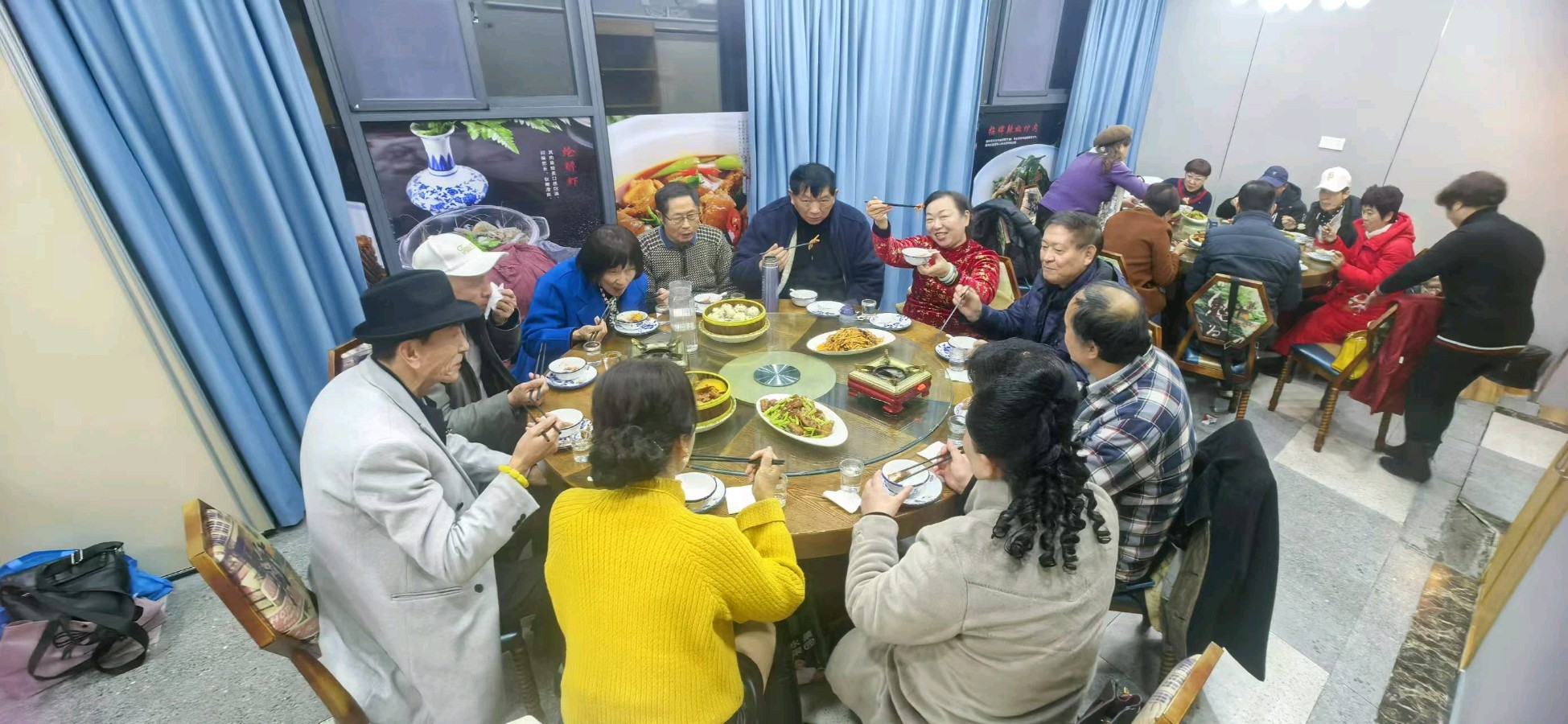 紧接着,大家手持象征着团结与友谊的队旗合影留念,将这美好的瞬间定格成永恒的记忆。之后,在美辰美团长的一声宣布下,K歌环节正式开始。四个包房内欢声笑语不断,8位组委成员贴心地为每一位到场的朋友提供周到的服务。从下午一点至六点,这里成为了音乐的海洋,歌声嘹亮,吸引了许多其他包厢的朋友驻足聆听。尤其值得一提的是,德高望重的周影老师以88岁高龄登台献唱,他的声音犹如穿越时光的洪钟,震撼人心。