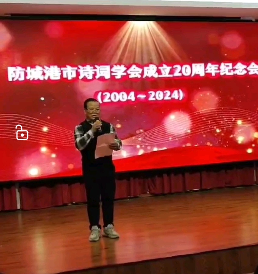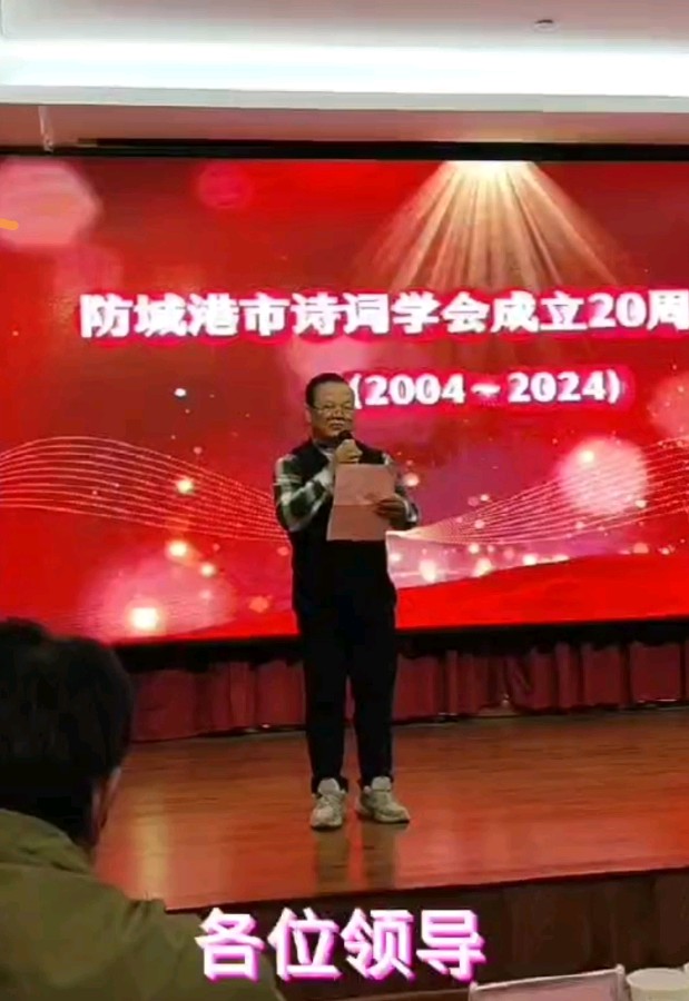 韵海扬波,双十载,星驰月掣。贤俊汇,志凌沧海,帜扬桂粤。北部湾头诗意盛,诗词之市风华绝。看笔端、绘就锦程长,情犹热。