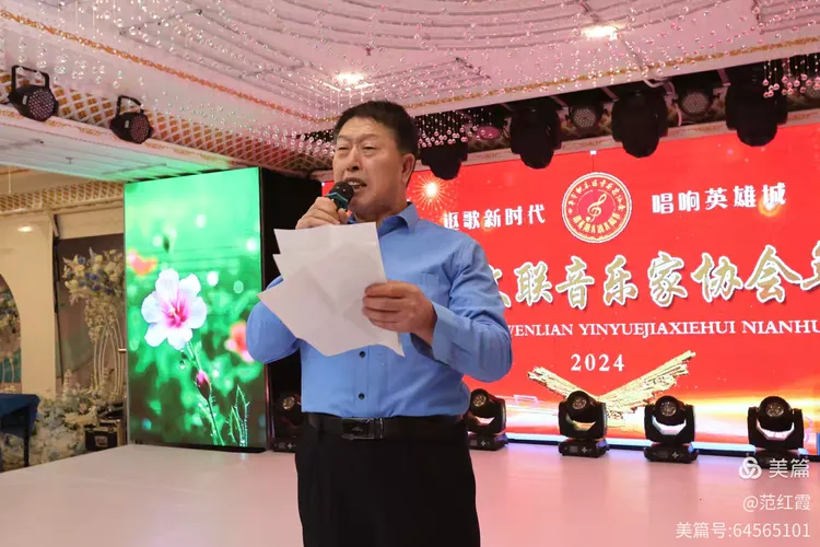 年会首先全体起立齐唱《铁东音乐家协会会歌》,然后铁东区音协主席张孝飞讲话,对2024年工作给予总结及2025年工作计划。张主席说,铁东区音协坚持文化送戏下乡,为老百姓送去喜闻乐见、正能量的红色节目。先后到石岭镇卧龙泉、叶赫、四平南湖公园等地演出5场,受到了欢迎和社会各界的一直好评。原创歌曲3首在全省参评获奖。 2025年要继续发挥铁东音乐家的创作优势,多创作优秀歌曲和戏剧小品,节假日到更多的乡镇和公共场所演出,给铁东区乃至全四平市观众交出一份满意的答卷。
