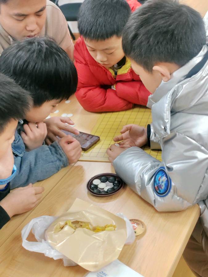 2024年12月27日周六晚六点至八点,对于小孙子和我来说,这是一个特别的夜晚。四少年同小区、同幼儿园、同小学,不远三千米来到同一个围棋专门培训班学习的2024年最后一节。这不仅是他们棋艺的成长时刻,也是我们共同探索思考艺术的美好时光。