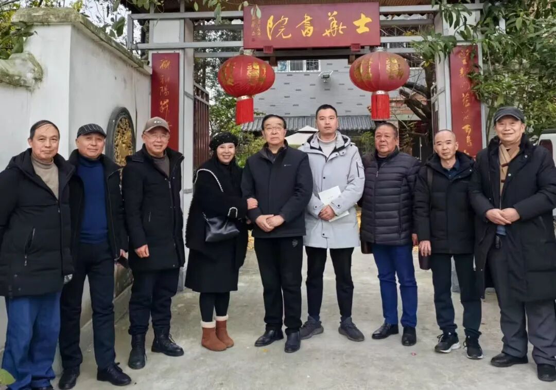 冬季的川西平原,在寒冬里依然彰显出勃勃生机。菜园里的蔬菜、农田绿油油的麦苗、油菜、胡豆和豌豆向着太阳微笑。周围的花草和树林在微风中摇曳,迎接编委们的到来。这是总编詹仕华先生读书创作,接待各地文朋诗友和居家之场所,也是文友之家。迎着寒风,师娘露出慈祥而和蔼可亲的笑容,迎接我们进入书院。