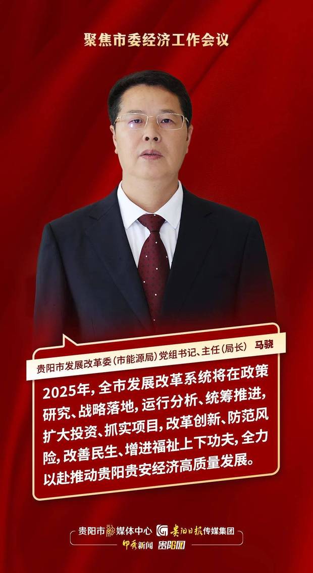 “刚刚闭幕的市委经济工作会,在深入贯彻落实中央经济工作会、省委经济工作会的基础上,科学研判贵阳贵安经济发展形势,系统部署明年经济工作,是一次凝聚思想共识、鼓舞士气干劲、提振发展信心的大会,特别是胡忠雄书记、王宏代市长的讲话政治站位高、分析研判准、思考谋划深、工作落点实,必将为明年贵阳贵安经济社会高质量发展、圆满完成‘十四五’规划任务注入强大动力。”12月27日,市委经济工作会议召开,市发展改革委(市能源局)党组书记、主任(局长)马骁在会后接受记者采访时说道。