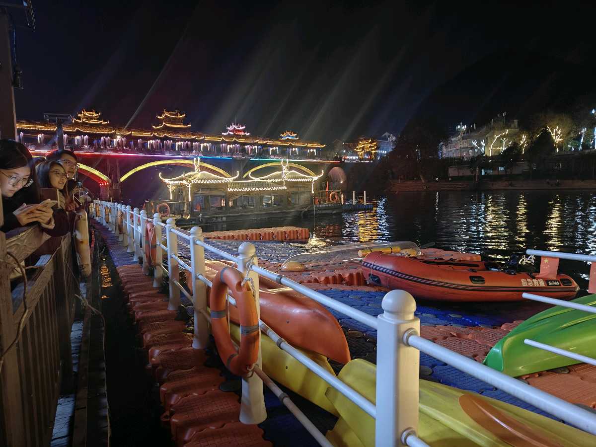 请望一望,夜幕降临华灯初上,下司古镇仍然是古色古香,被装点得如诗如画带来了多少遐想。古老的街道两旁,古朴的建筑在灯光的映照下显得格外迷人让人心情舒畅。人们从四面八方汇聚而来观望,满怀期待地等待着表演正能量。