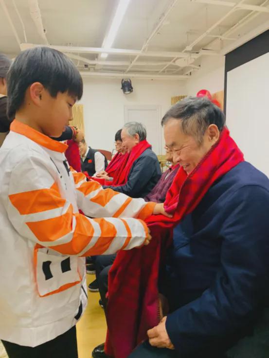 表演结束后,孩子们给专家们敬献了围巾,表达了对专家老师的敬意。