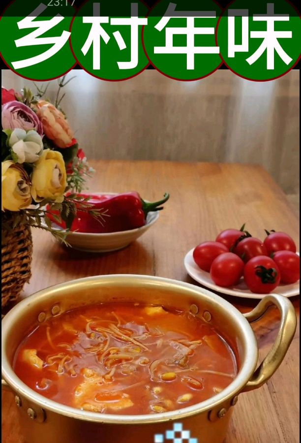 现在还没有到年夜大家亲戚朋友也要聚一聚,几桌人坐在一起,桌上摆出的佳肴显得非常丰盛,有土鸡土鸭还有河里捞出的新鲜鱼,长辈们端起酒杯,祝福祖国繁荣昌盛,祝福年轻人前程似锦。温馨的气息弥漫在家里和人们的心里,乡村充满了年味的气息。
