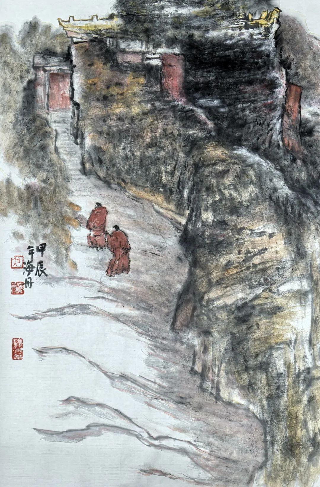 吴海舟 湖北黄梅人。中国人民解放军原总参谋部师职干部,大校军衔,军旅山水画家。现任全国书画艺术委员会副主席,中国书画院理事,国家一级美术师,人民大会堂首席艺术顾问,CCTV《艺术名家》特聘艺术顾问,人民美术出版社签约艺术家,中国东方文化研究会国画艺术研究员,《收藏天下》全国数字电视频道学术顾问和特邀艺术家,中国大众文化学会名人书画艺术发展委员会委员,CCTV《决策中国》专家智库联盟副理事长,孔子美术馆客座教授。《中国书画名家》杂志社副社长。曾历任《中国长城书画院》常务副院长,《中国三峡画院》副院长,石家庄经济学院艺术系客座教授。