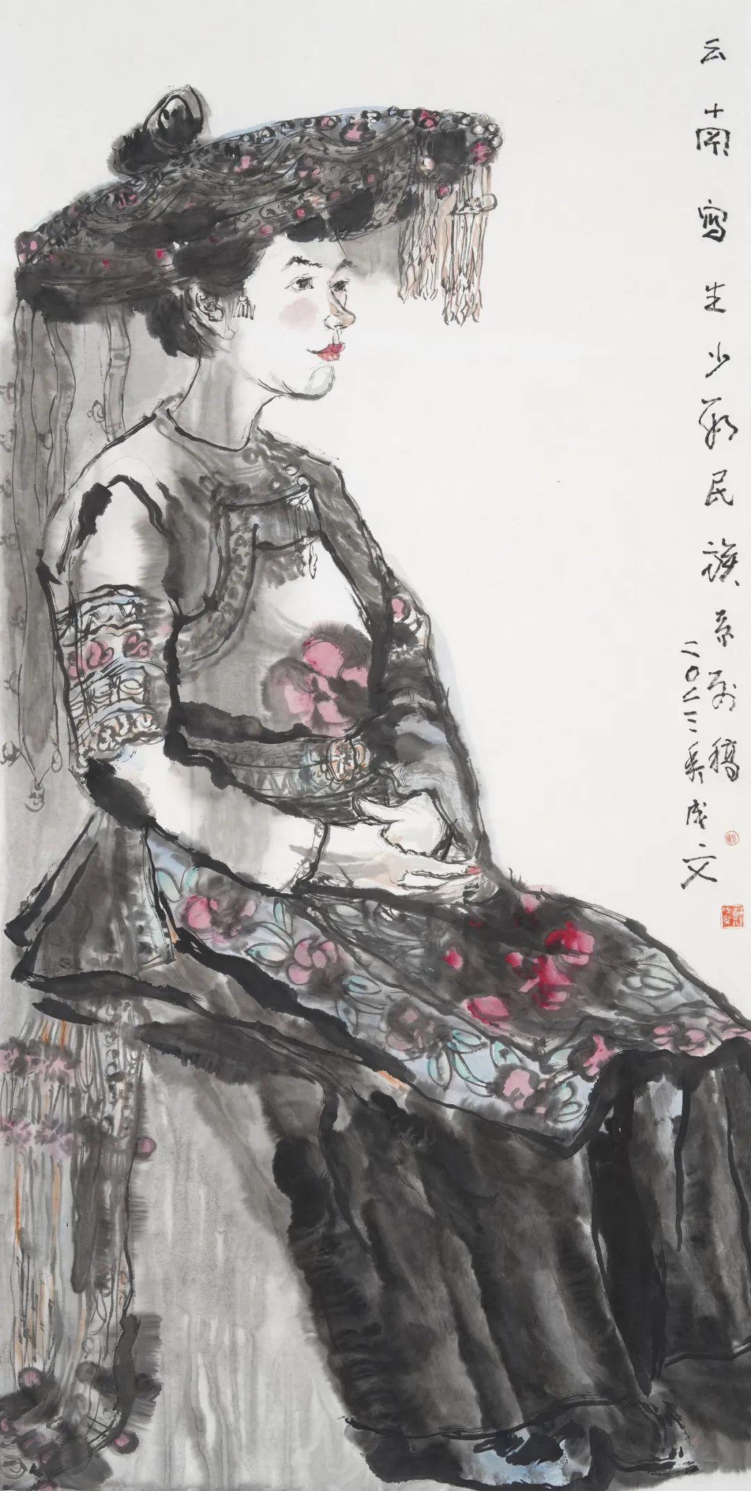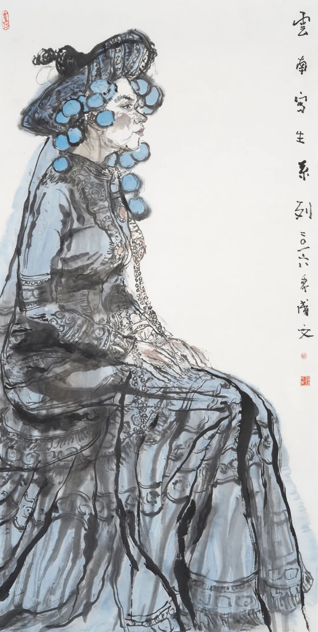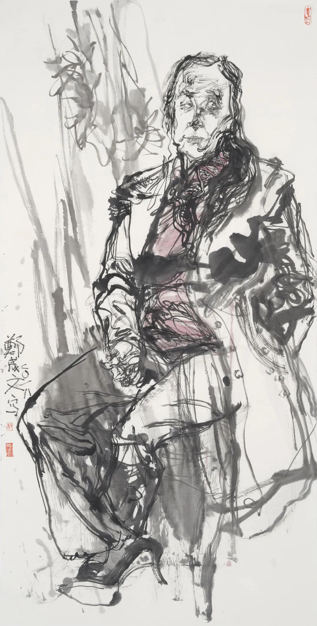 艺术家简介:郑成文 1960年生,陕西西安人。1979年入伍,毕业于北京解放军艺术学院美术系,受教于著名画家刘大为先生,先后得到史国良、郭全忠等名家的指教。多次在全国、省、市报刊发表作品,参加全国、全军美展。现为中国美术家协会会员,任惠中工作室画家,陕西国画院特聘画家,西安国画院画家,陕西当代国画艺术研究院副院长,港澳台美协理事。作品欣赏:《水墨人物写生》136X68 cm