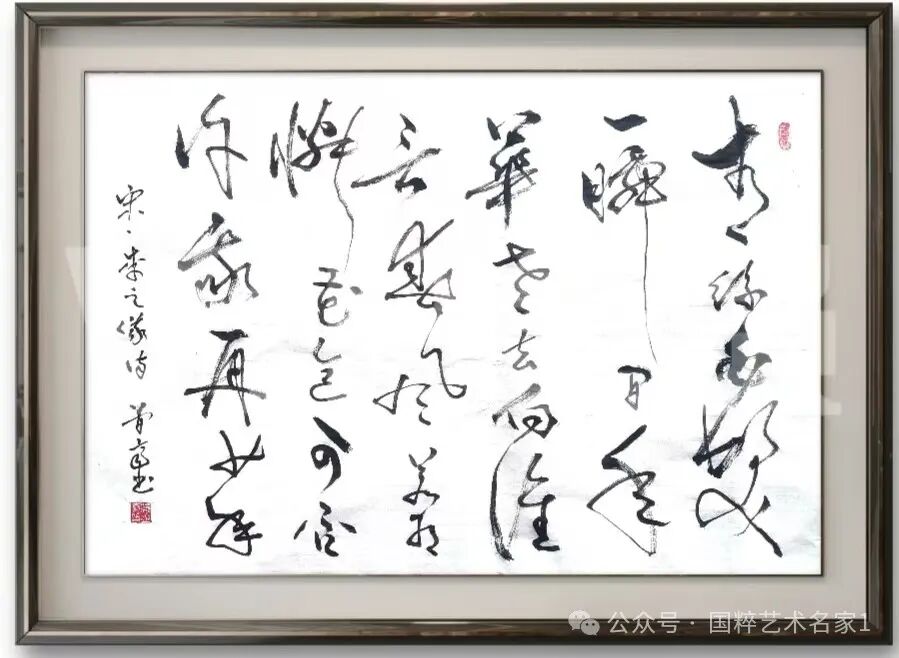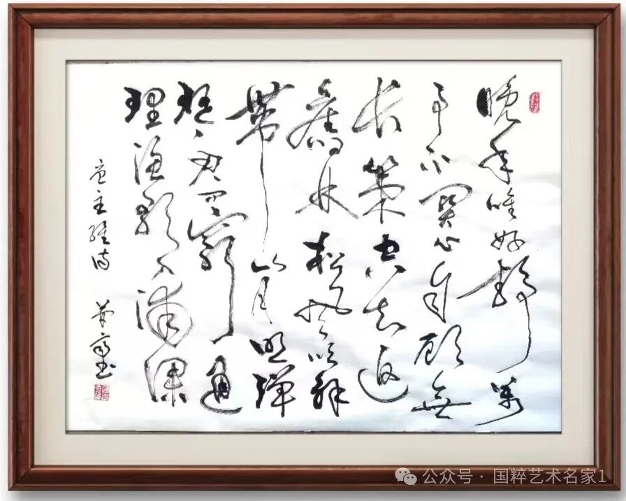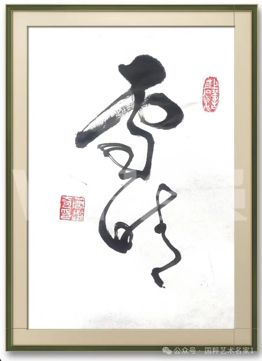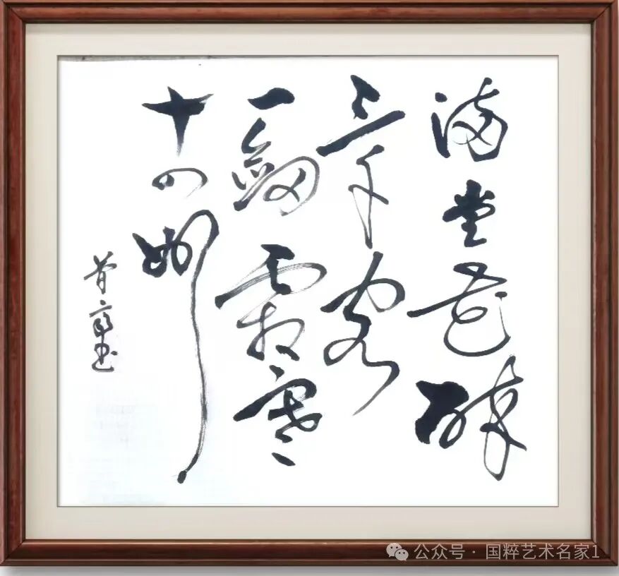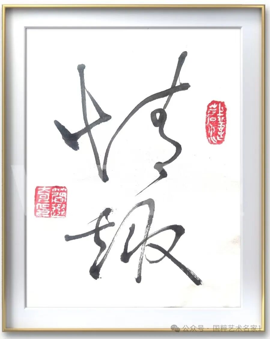 简选奇先生作书时,将满腔的情感倾注于笔端,如醉如痴,其狂草潇洒利落,笔画苍劲有力,几乎每笔都有多次顿折,谓之“一波三折”,这种草书的线条往往是逆锋运笔挣扎奋进而一气呵成。